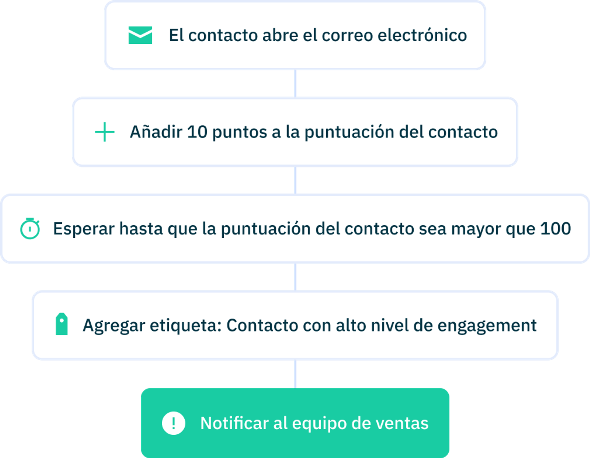 Esto no significa que debas descuidar a los clientes que han desaparecido. Algunos de ellos pueden ser fantasmas durante mucho tiempo. Aun así, debes crear una secuencia de correo electrónico para estos prospectos para que puedan mantenerse actualizados e interactuar cuando estén listos. Una buena plataforma de marketing automation puede identificar prospectos listos para vender al monitorearlos, categorizarlos y evaluarlos de acuerdo con sus acciones e intereses. Esto te permitirá enviar prospectos de alta calidad a tus equipos de ventas y agilizar el proceso de conversión.