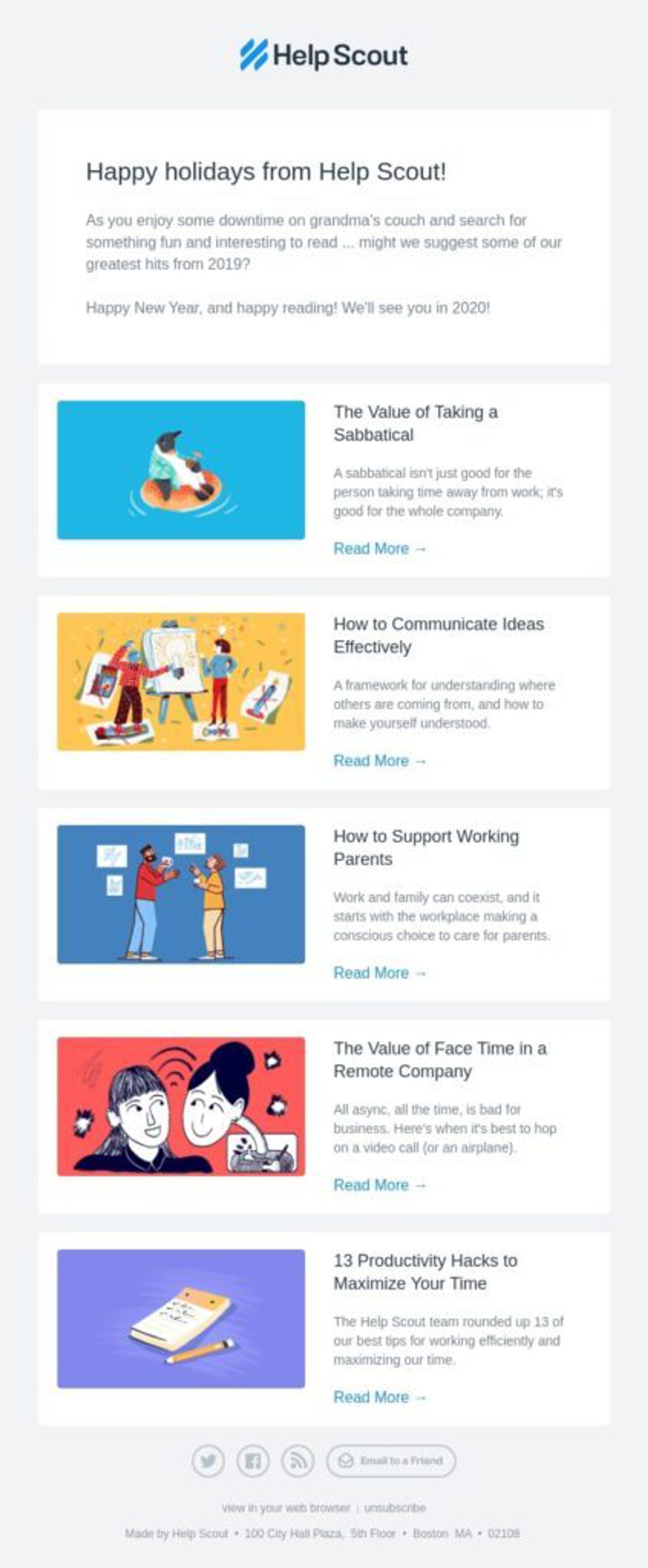 Ejemplo de newsletter que ofrece acceso a artículos de blog seleccionados en función de un interés. Fuente: Really Good Emails.