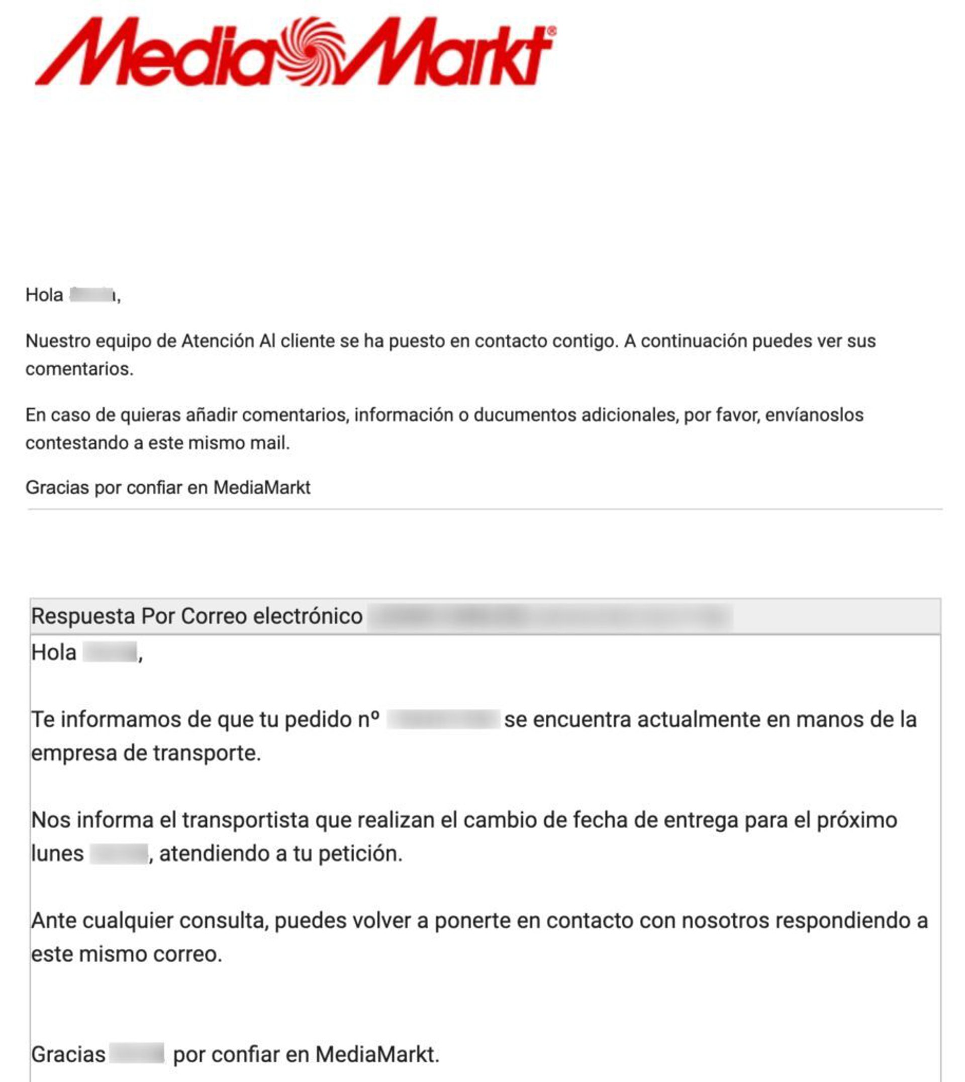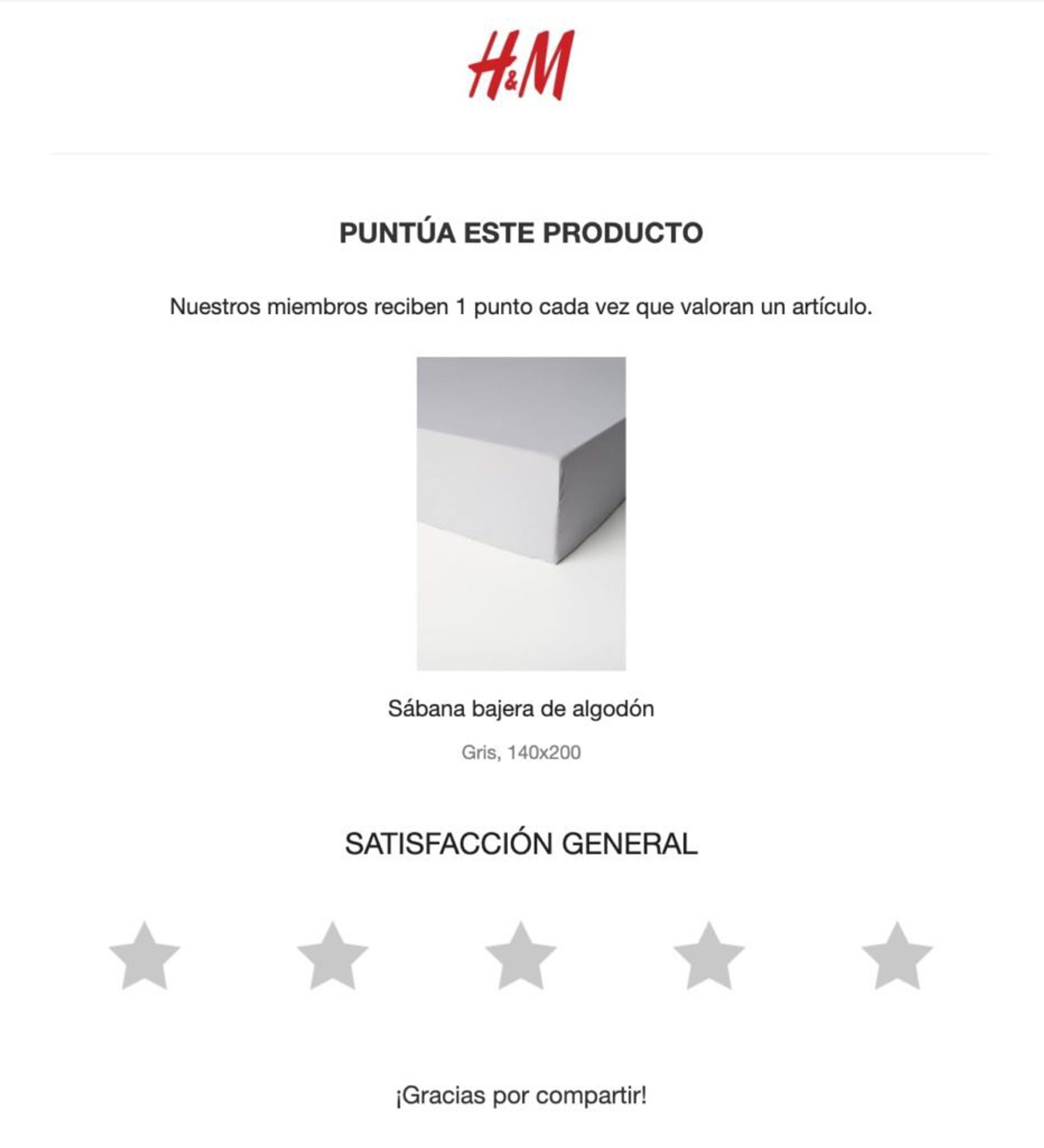 Ejemplo de mensaje que solicita la valoración de un producto por parte del cliente tras la recepción de la compra.