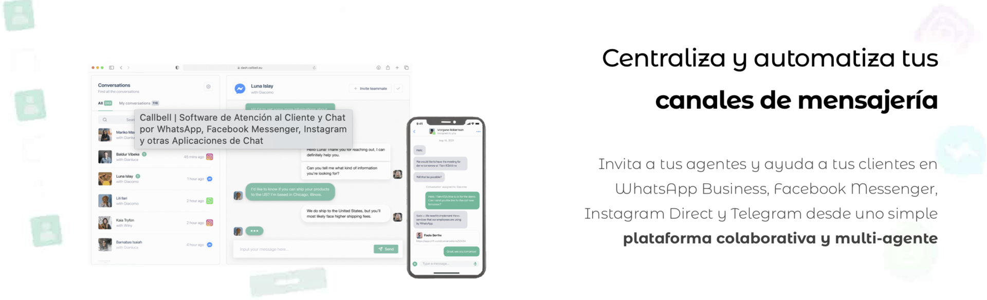 Por último, otra de las alternativas de CRM para WhatsApp es Callbell. Este CRM ofrece herramientas para la comunicación, el soporte en línea y las ventas. Al igual que otros CRM, permite mantener una comunicación multicanal con los contactos y su plataforma es fácil de usar.