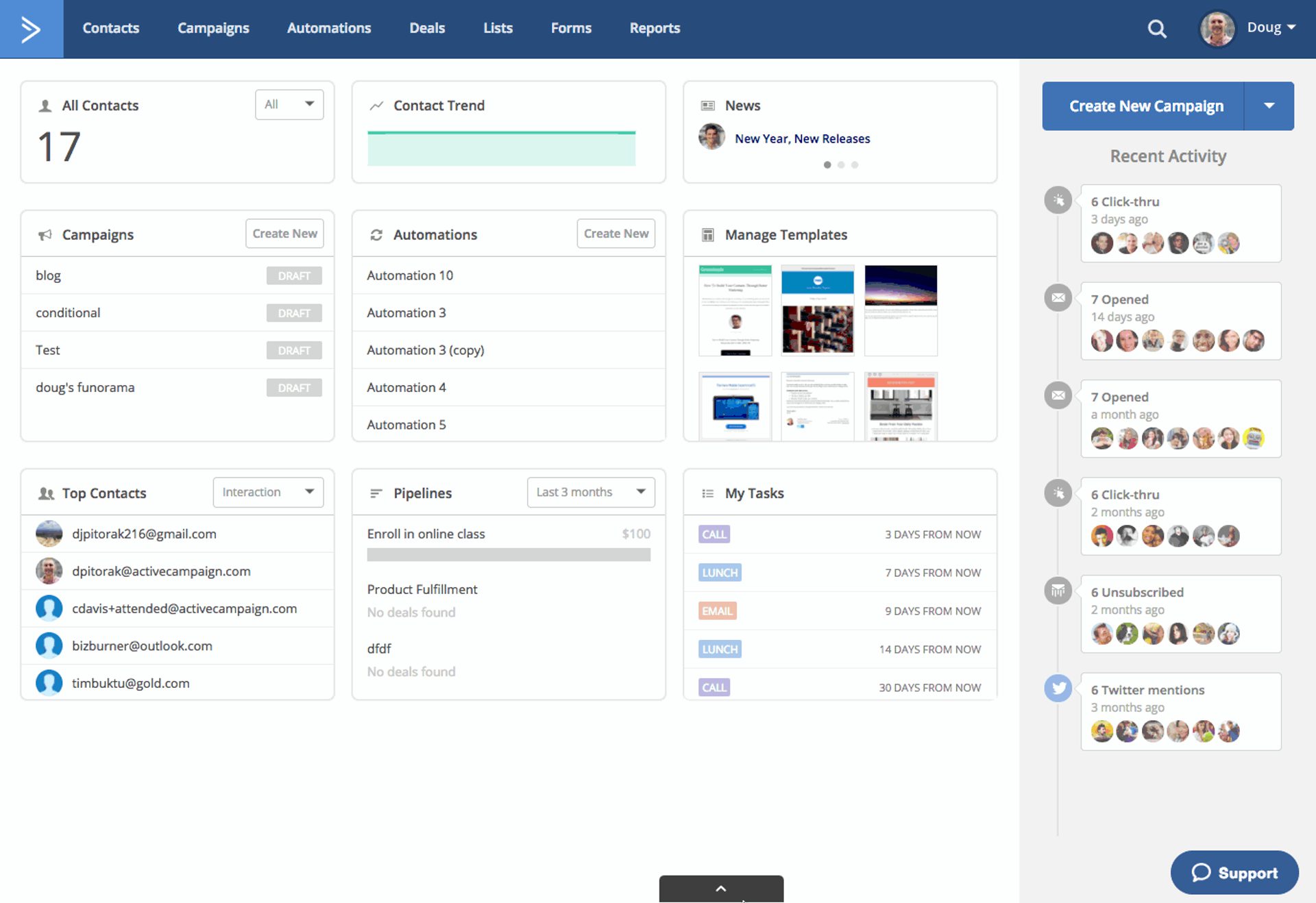 Puedes hacer un seguimiento de varios KPI de marketing con algunas funciones de ActiveCampaign, como: