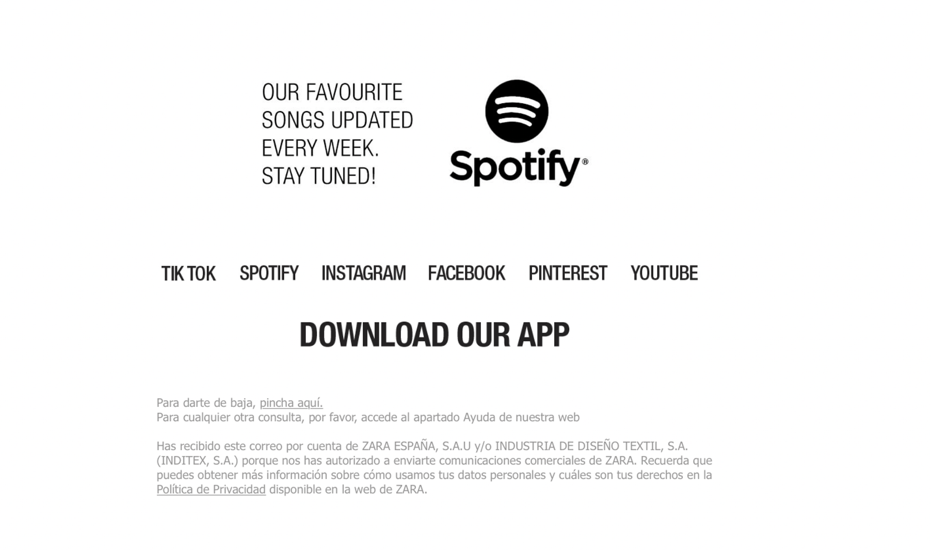 ¿El resto? Solo unos pocos detalles: enlaces a redes sociales, opción a darse de baja y enlace a la política de privacidad. Un diseño limpio, ordenado y, sobre todo, ¡irresistible!