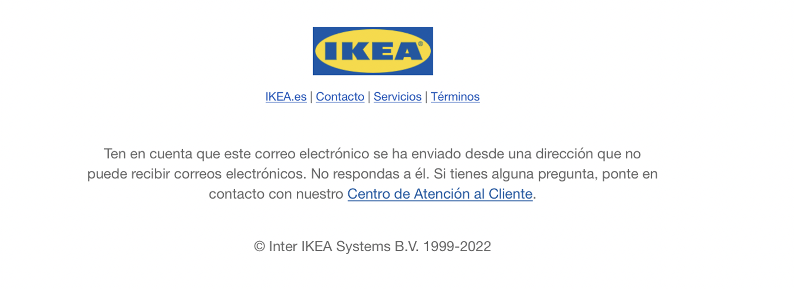 Pie de email de IKEA. Fuente: IKEA.
