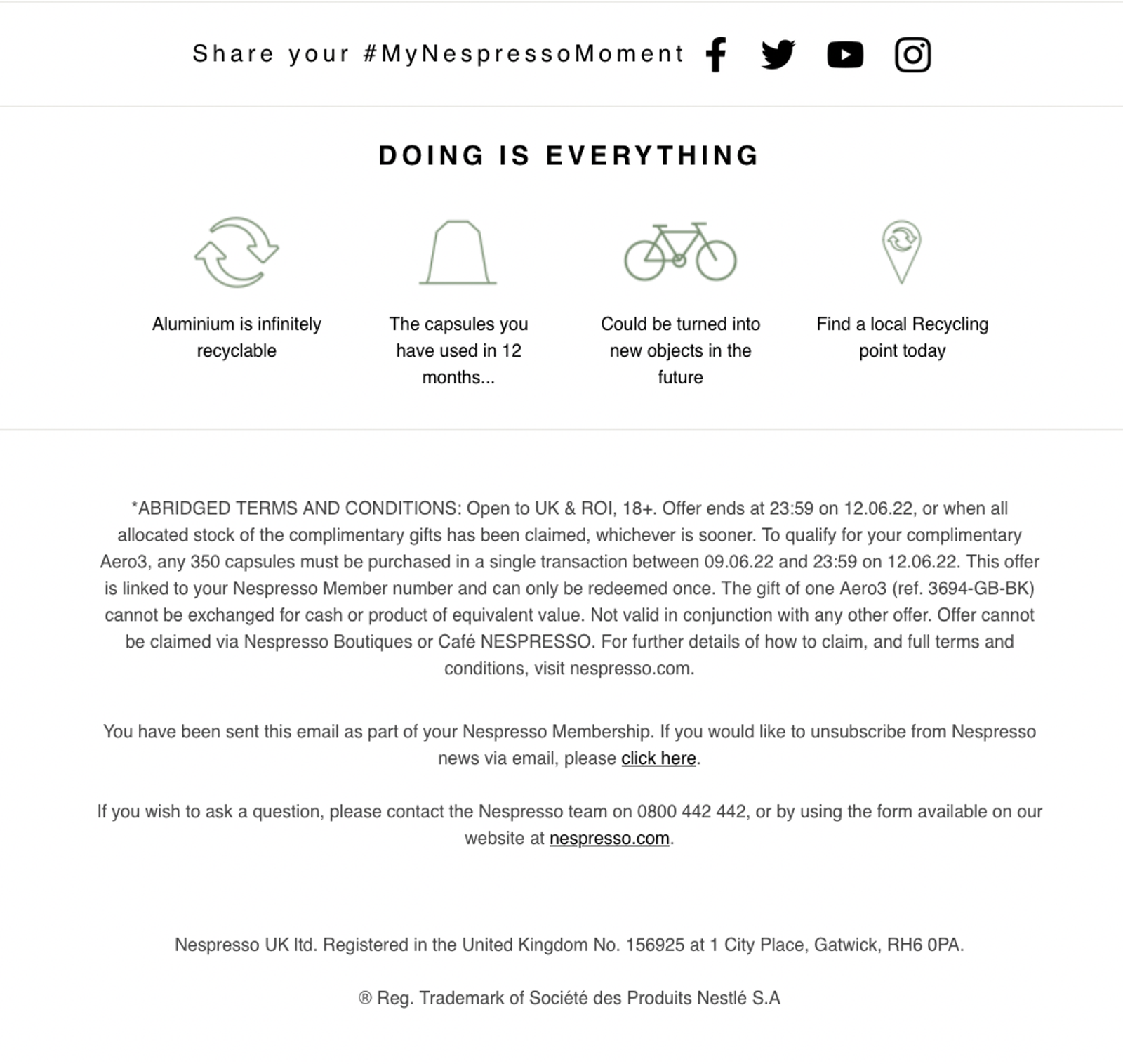 Pie de email de Nespresso. Fuente: Nespresso.