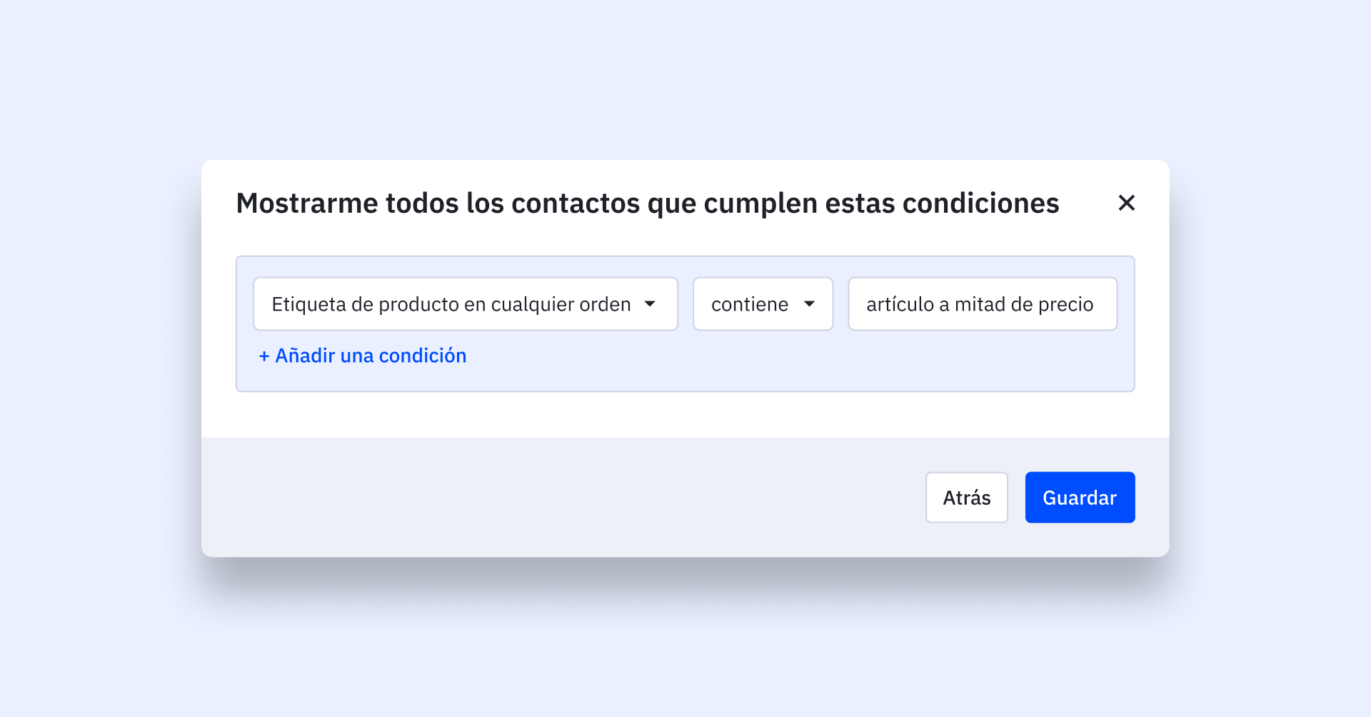 Enfócate en el cliente con las siguientes condiciones derivadas de los datos de tus productos:
