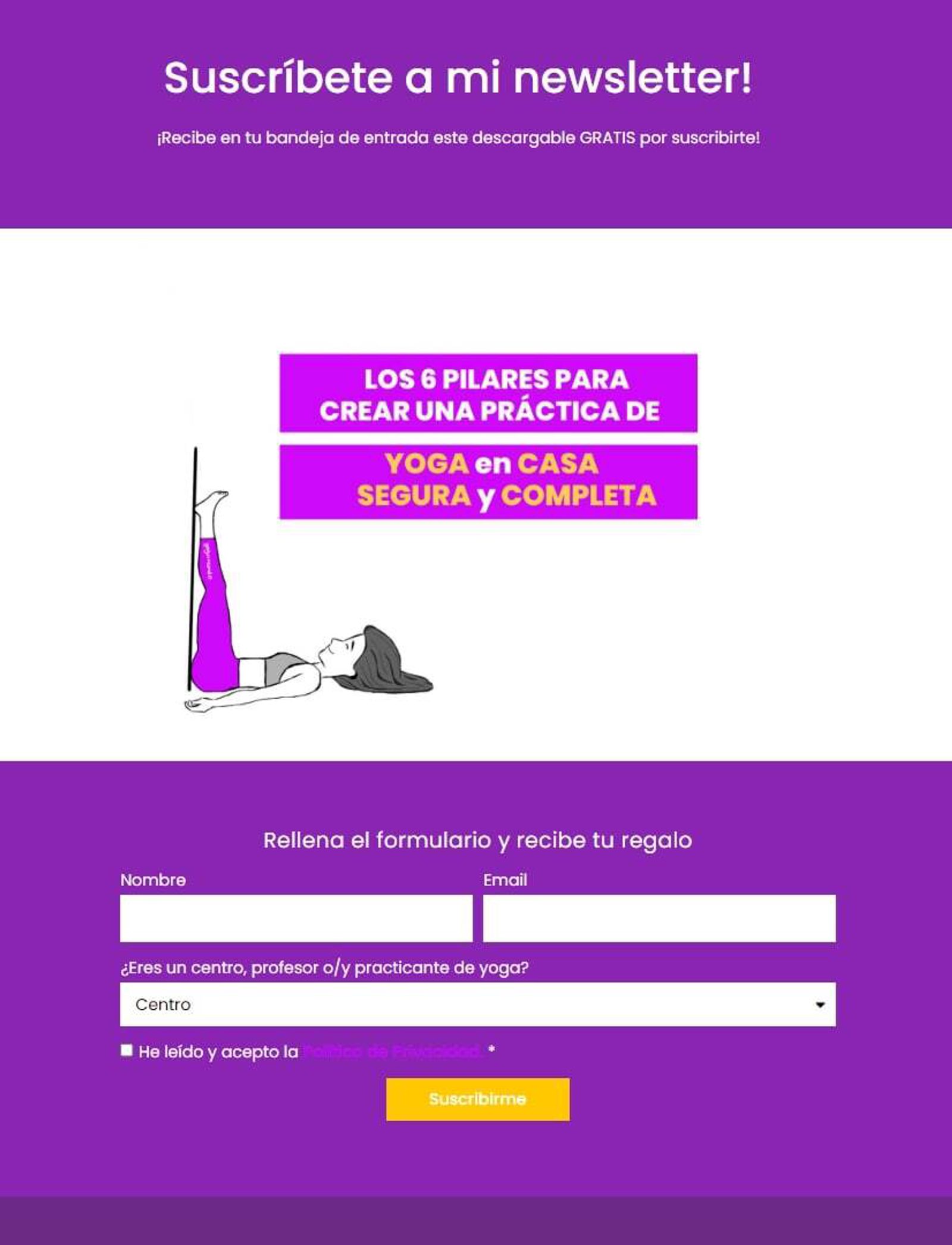 Una página de destino exclusiva para las suscripciones de email puede animar a los usuarios indecisos a apuntarse a tu lista (y a tu imán de leads).