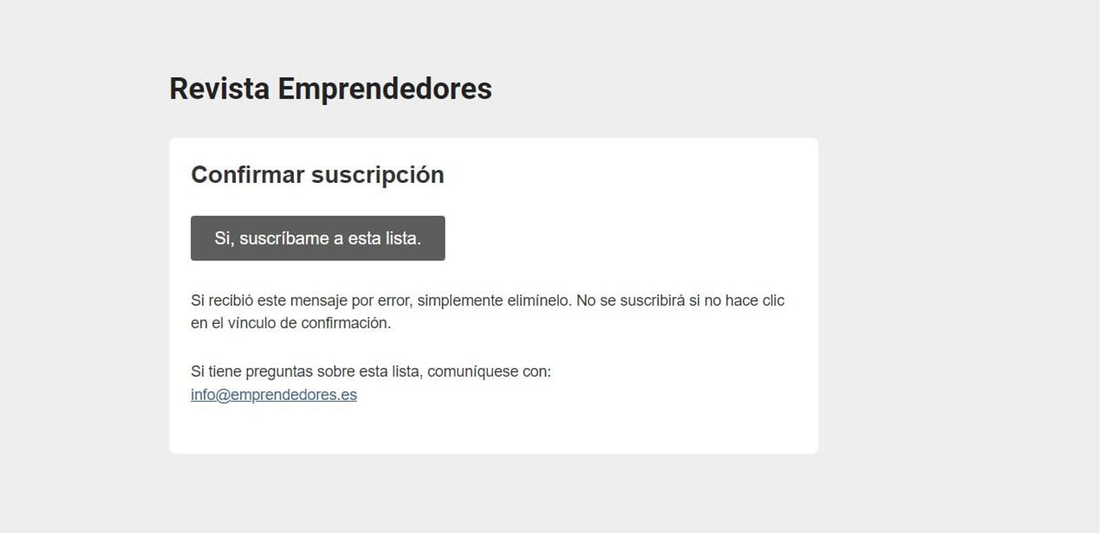 Un proceso de opt-in doble implica un paso adicional (de ahí lo de doble). Los clientes se suscriben a través del formulario y luego reciben un correo electrónico con un enlace en el que deben hacer clic para confirmar su suscripción.