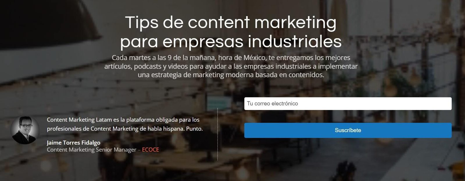 Cada martes, a las 9 de la mañana, los marketers de las empresas industriales de México se sientan a leer los mejores consejos de content marketing directo en sus bandejas de entrada.
