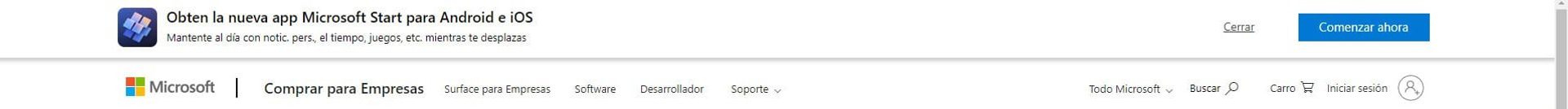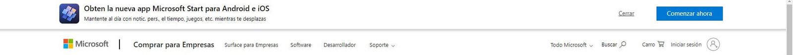 Microsoft utiliza una barra flotante con un mensaje sencillo, que refleja en pocas palabras lo que ofrece.