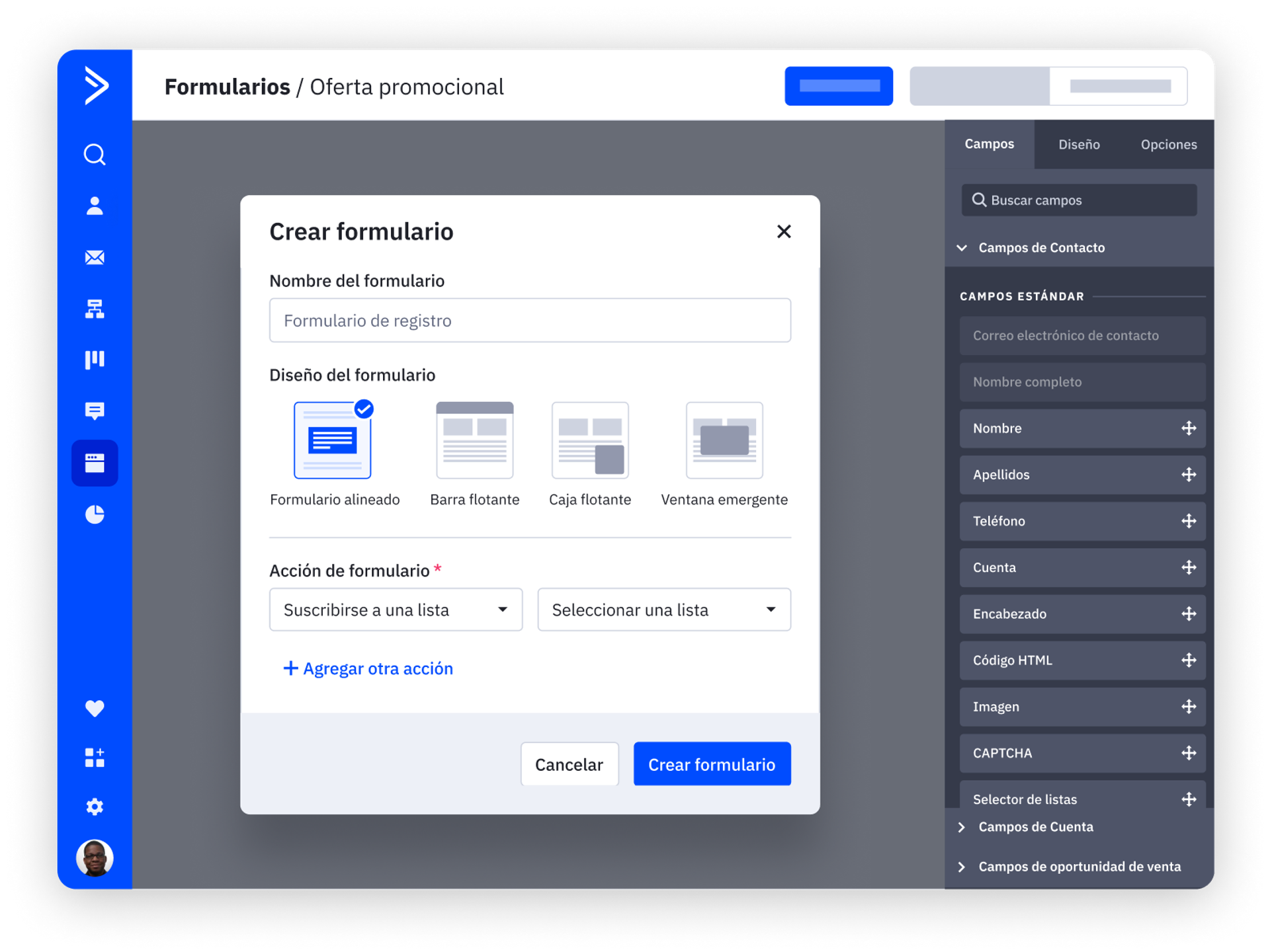 Crea el formulario más adecuado para tu página web con ActiveCampaign. Fuente: ActiveCampaign.