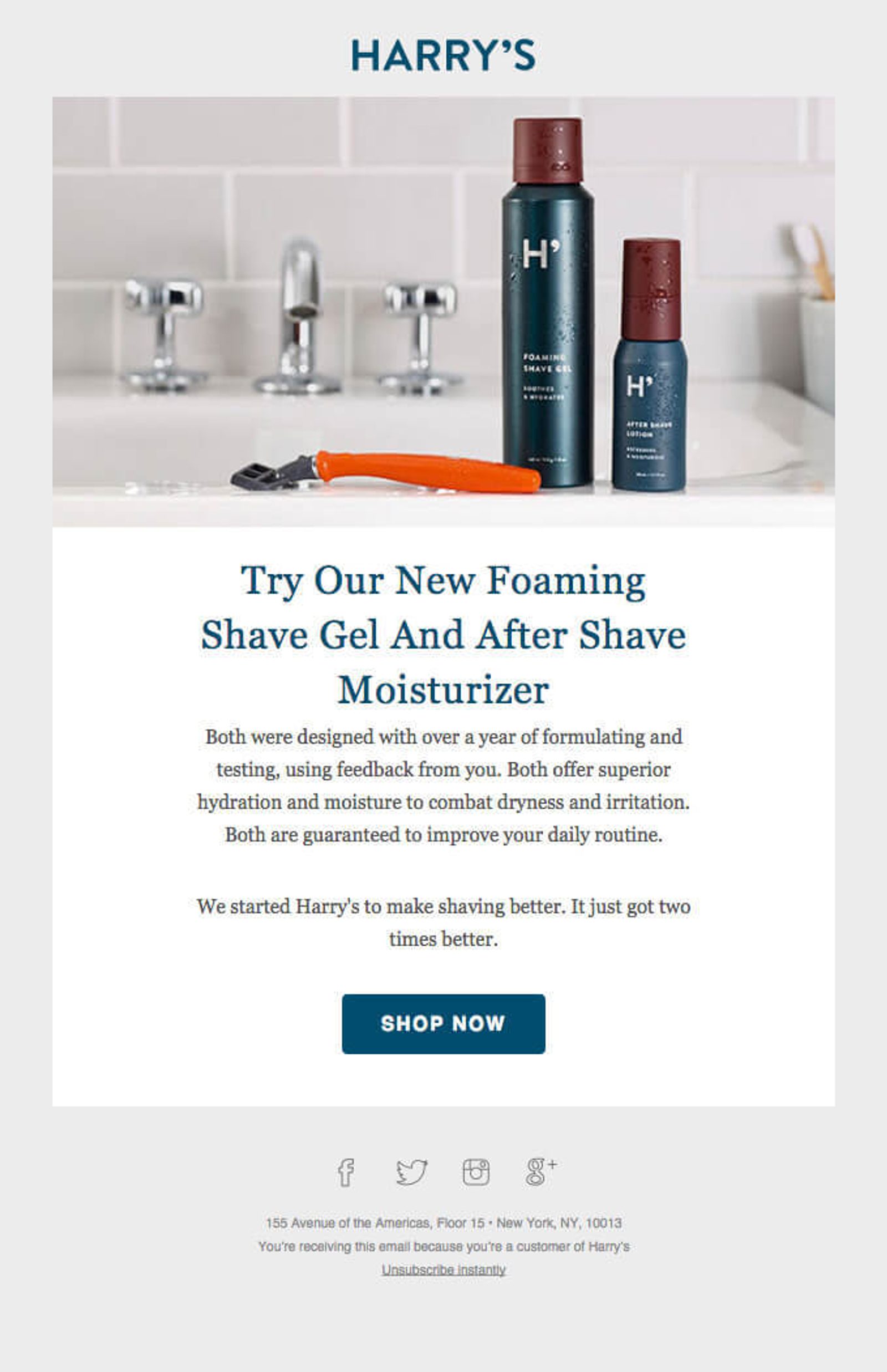 Harry's, un competidor de Dollar Shave Company, envía este correo electrónico de venta adicional: