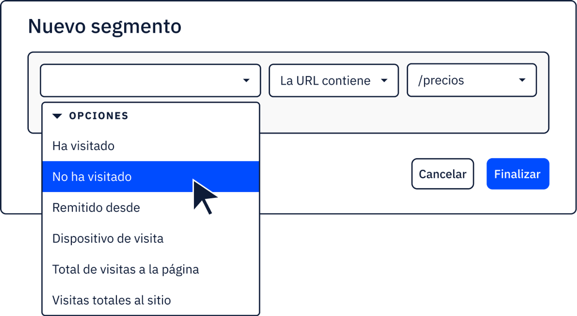 - “Personas que nunca han comprado, pero que han mirado una página de productos o servicios en tu sitio web al menos cinco veces”