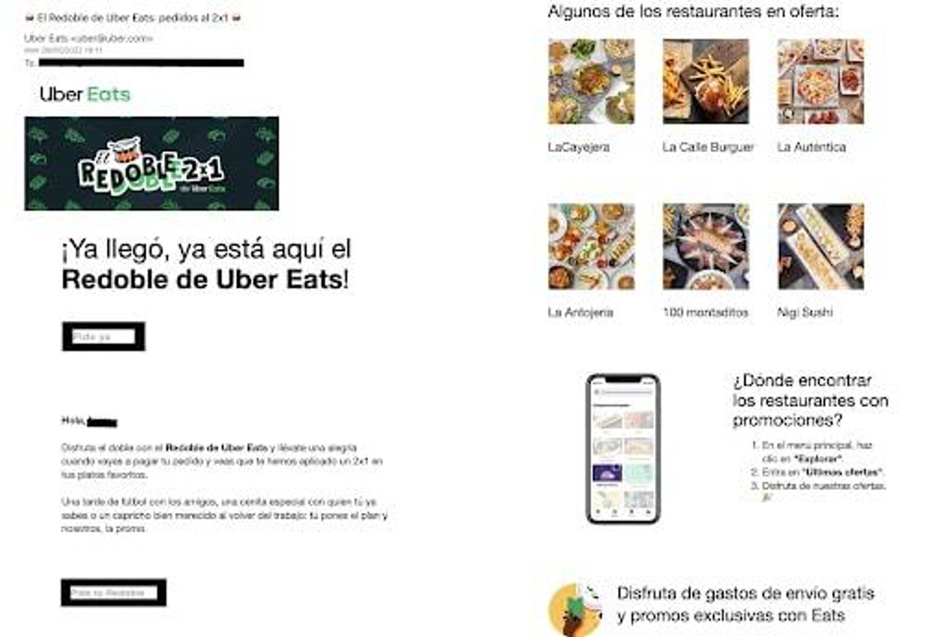 Uber Eats utiliza la segmentación geográfica. Fuente: Correo electrónico enviado por Uber Eats.