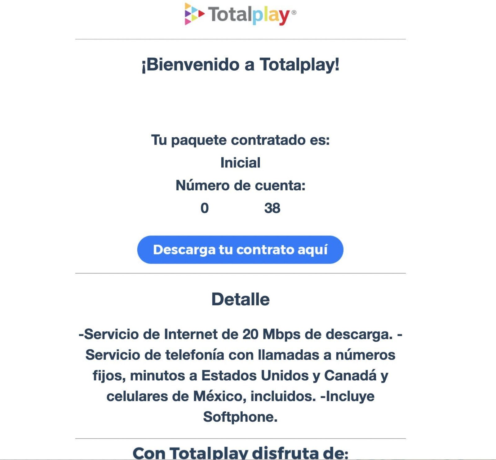 Este email de bienvenida incluye todos los detalles del paquete de servicios contratado. De esta manera, quien recibe el correo se asegura de que todo sea correcto. Además, se incluye una opción para descargar el contrato del paquete adquirido.