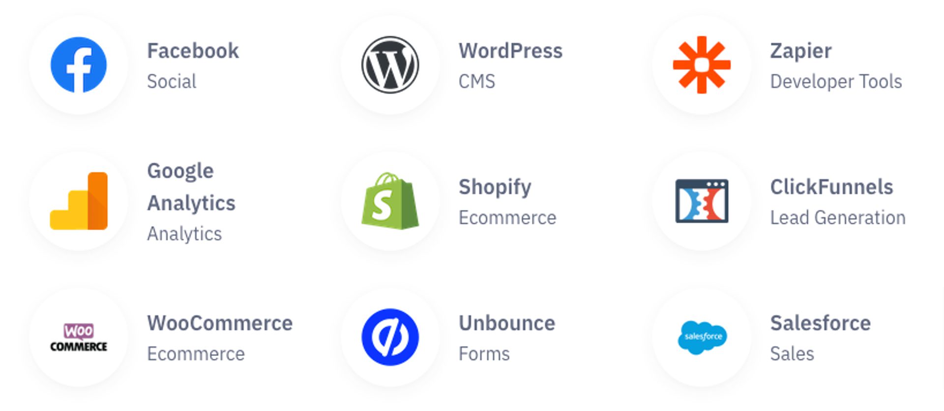 | Conectores de datos y herramientas de integración | Integraciones modulares de diferentes aplicaciones y datos. AmplÃa las funcionalidades de las aplicaciones. | ActiveCampaign |
