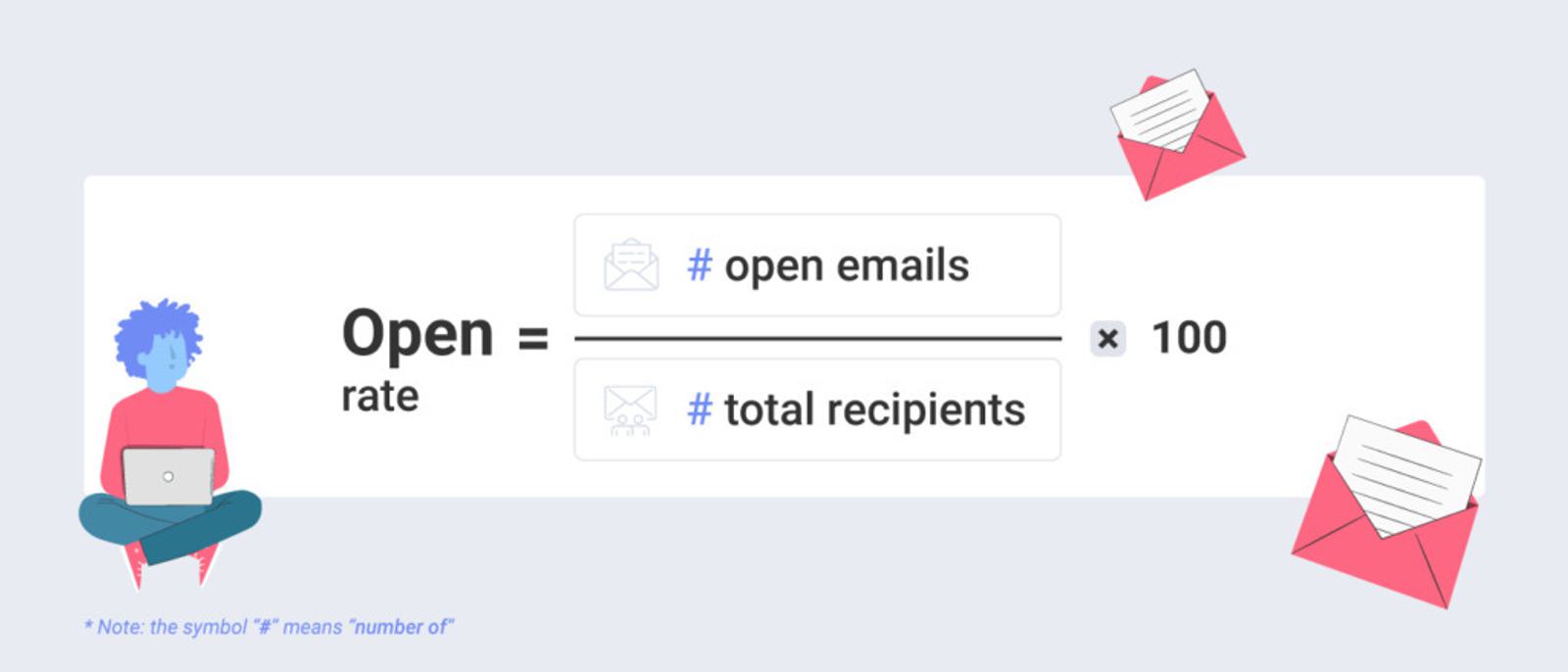 Para calcular la tasa de apertura, tienes que dividir el número de correos electrónicos abiertos entre el total de entregados y multiplicar esa cifra por cien. De esta forma obtendrás el porcentaje de correos abiertos o tasa de apertura.
