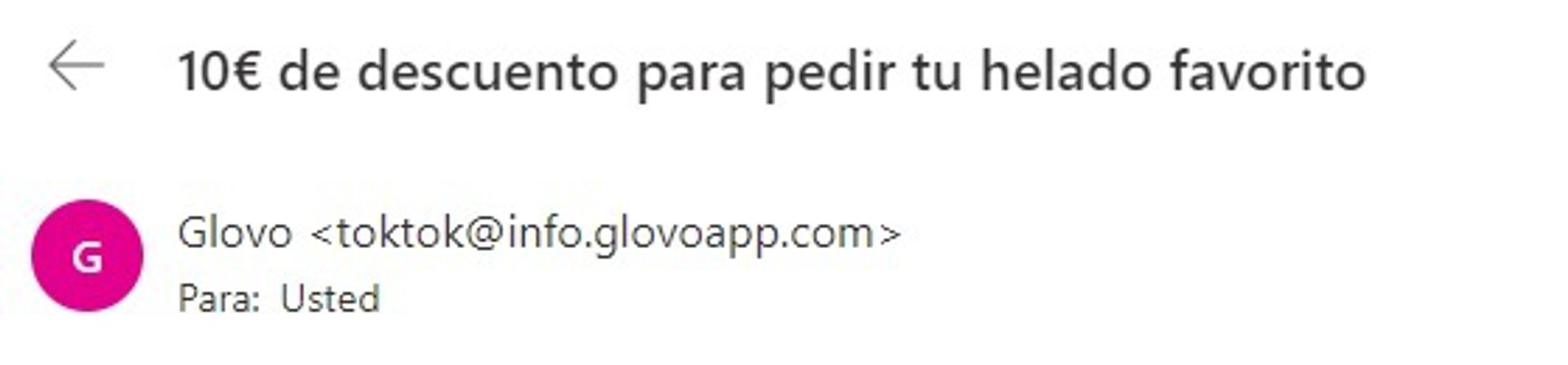 Conecta con el usuario a través del asunto del correo electrónico. Fuente: Glovo.