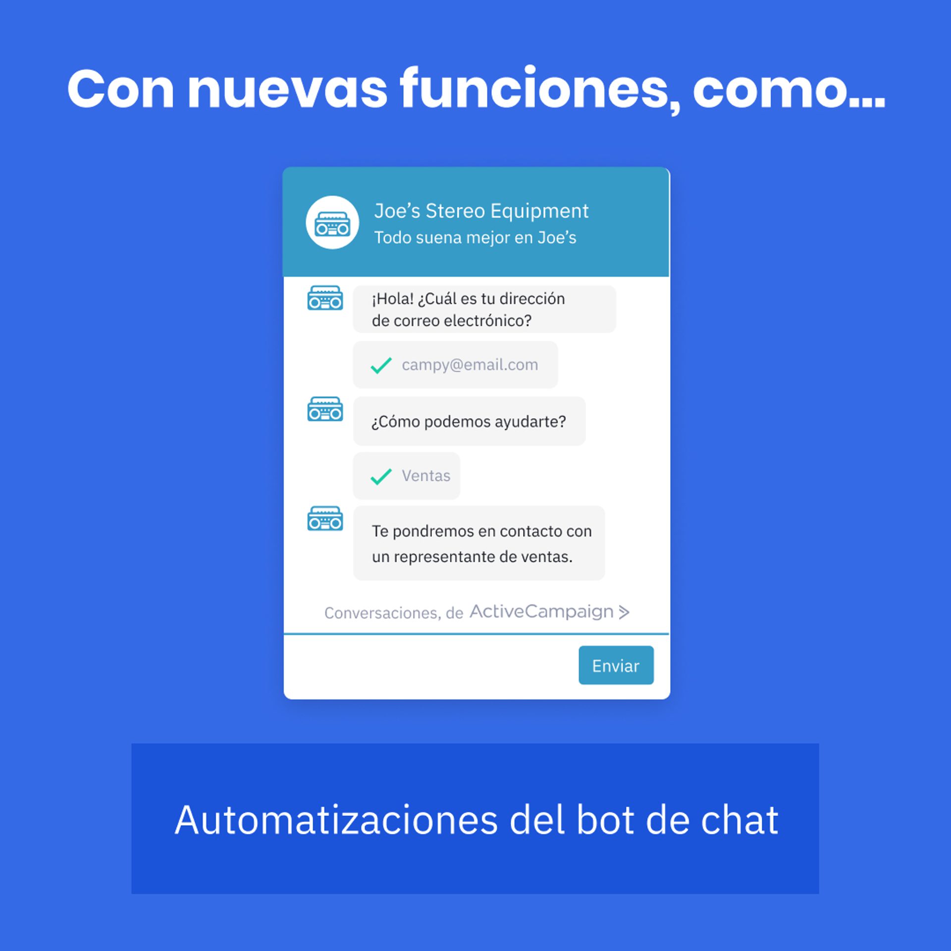 A través de los chatbots, ofrecerás una atención rápida y personalizada, mejorando así la experiencia del cliente. Fuente: ActiveCampaign.