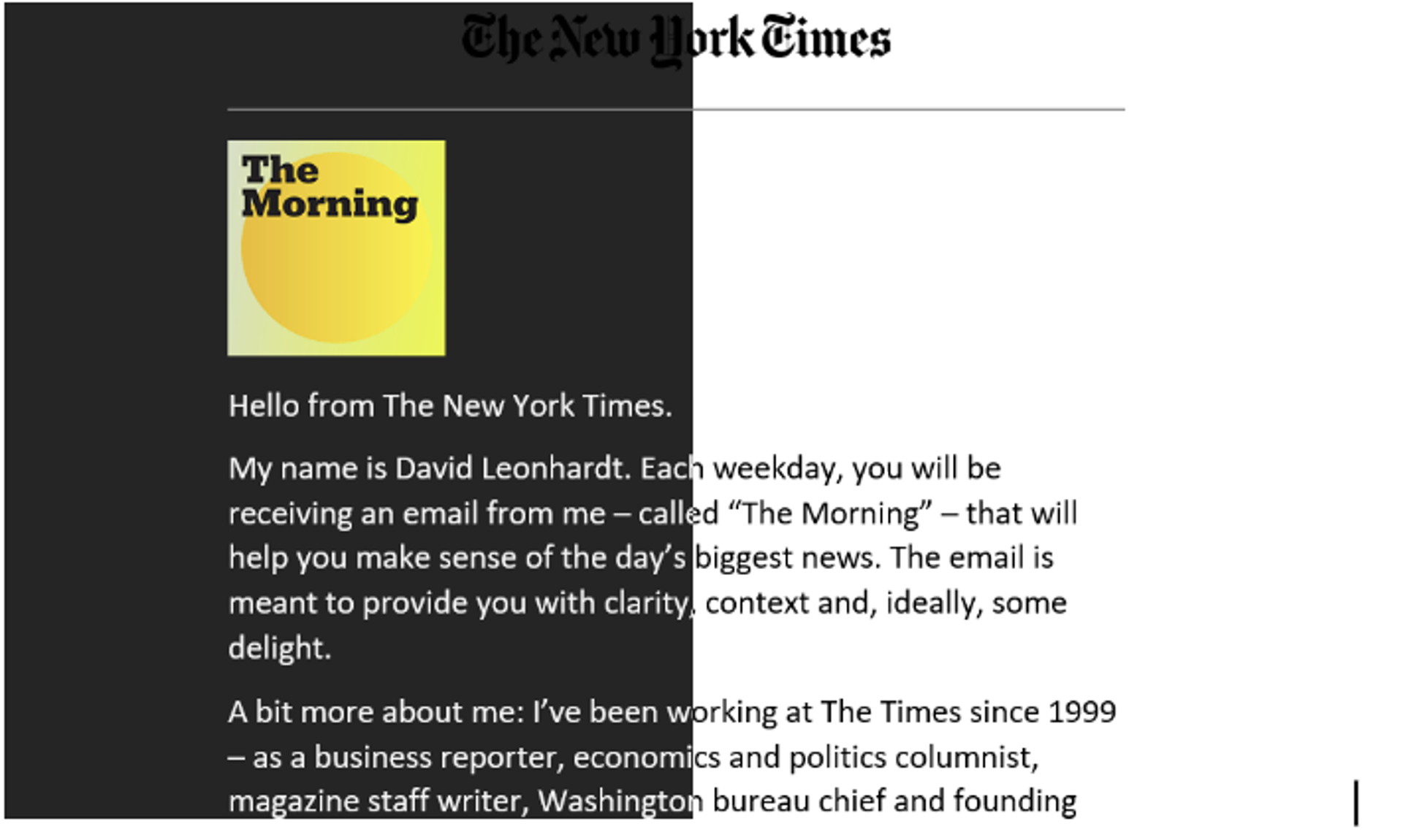 The New York Times adapta muchos de sus emails a los distintos modos de lectura. Fuente: The New York Times.