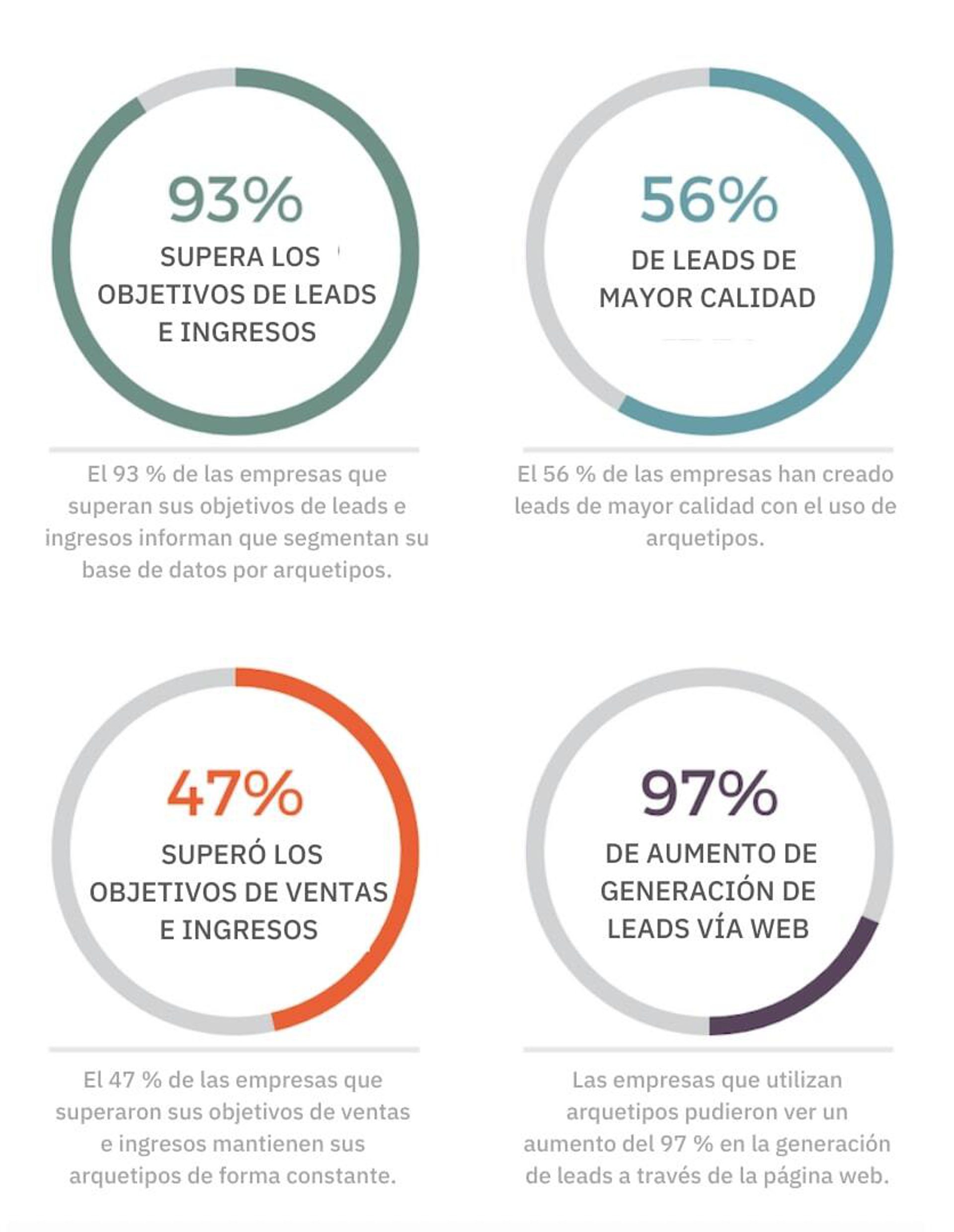 - El 93 % de las empresas que superan sus objetivos de leads e ingresos segmentan su base de datos por arquetipos.