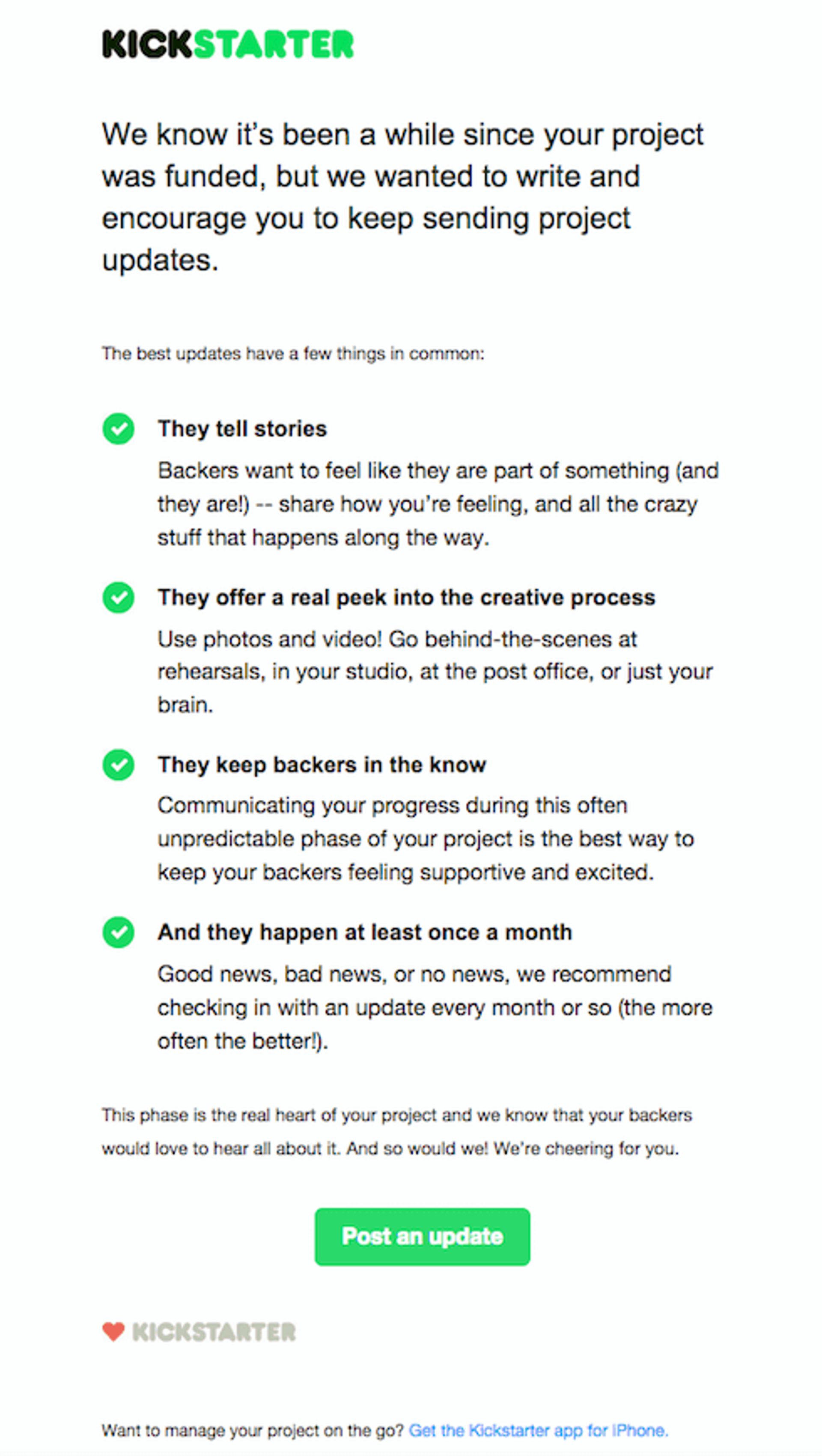 Los correos electrónicos de seguimiento son fantásticos para terminar de convencer a aquellos clientes que se registraron pero no avanzaron. Llevan a los clientes a querer "unirse a la multitud" y seguir usando el servicio como todos los demás.