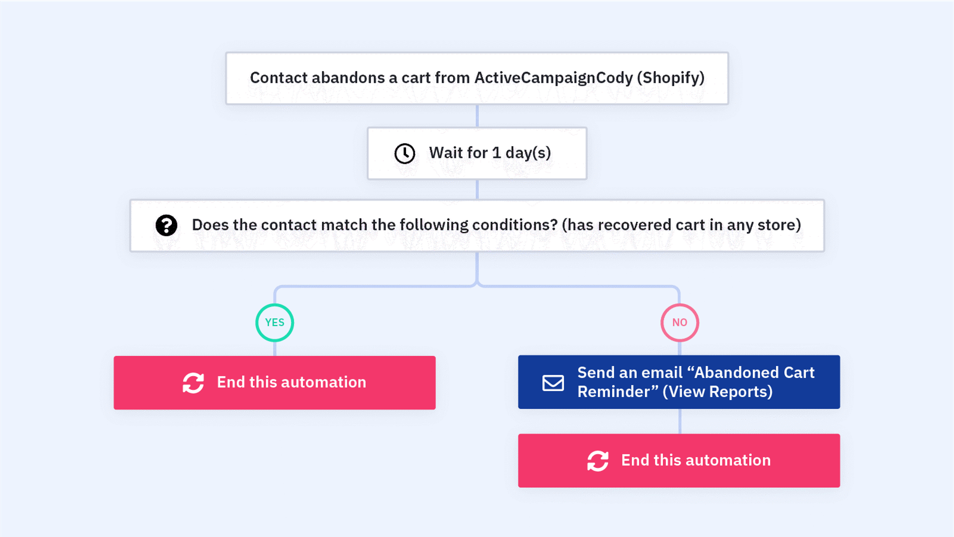 ¿Quieres asegurarte de que tus clientes reciban un correo electrónico de confirmación de compra? ¿Te gustaría incentivar a los visitantes que abandonaron tu sitio web con artículos en su carrito a completar su compra? ¿O tal vez organizas un evento y quieres enviar recordatorios constantes a los asistentes? Puedes hacer todo eso en ActiveCampaign con unos simples clics.