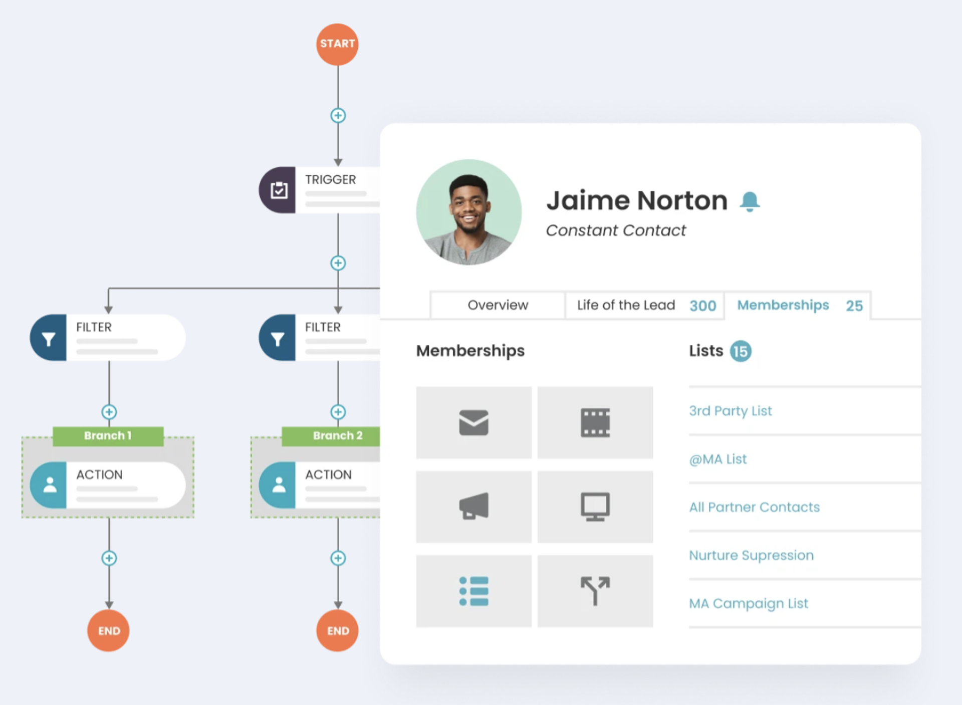 El marketing automatizado es un elemento diferenciador clave entre ActiveCampaign y Constant Contact, ya que cada plataforma responde a necesidades comerciales diferentes. ActiveCampaign destaca por sus sencillas pero eficaces funciones de automatización, mientras que Constant Contact ofrece funciones de automatización más básicas, adecuadas para acciones de marketing más simples.