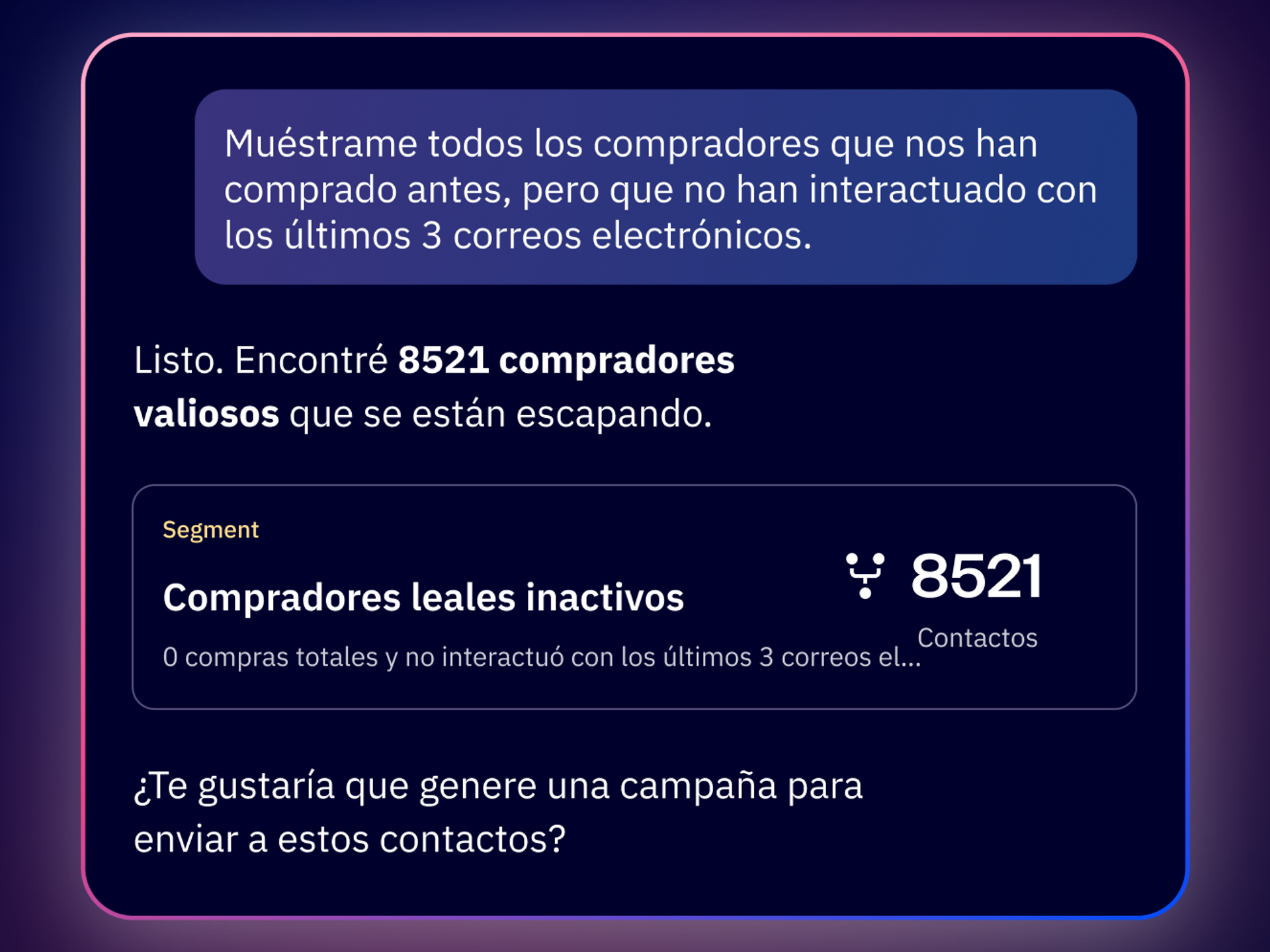 Constant Contact te ayudó a dar los primeros pasos. ActiveCampaign te ayuda a escalar con la IA que crea campañas por ti, la plataforma de correo electrónico núm. 1 en entregabilidad y más de 850 plantillas de automatización listas para usar.