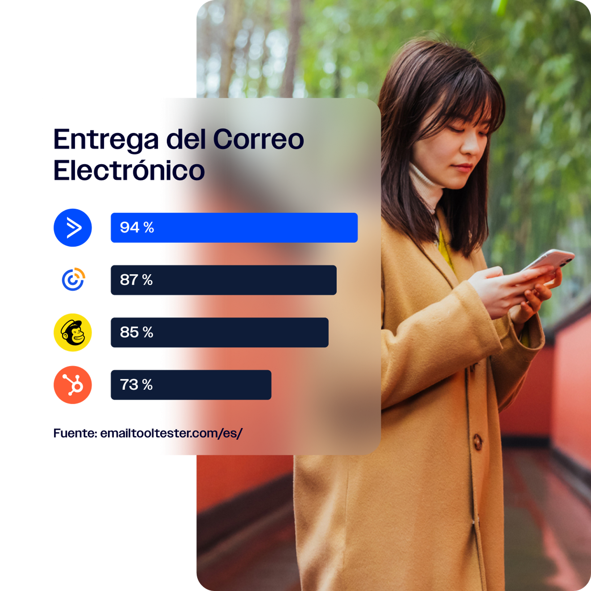 La mejor infraestructura y los conocimientos técnicos de ActiveCampaign significan que tus correos electrónicos se entregan en el buzón con una tasa mayor que Mailchimp y Hubspot.