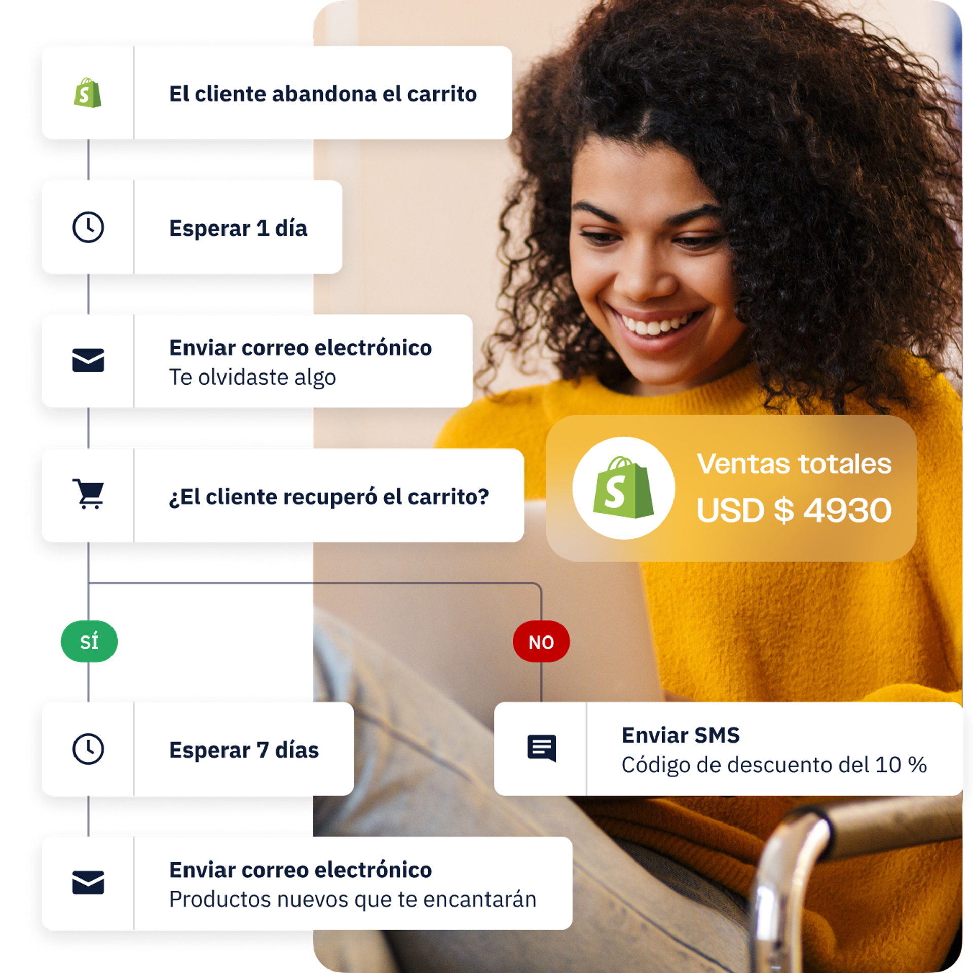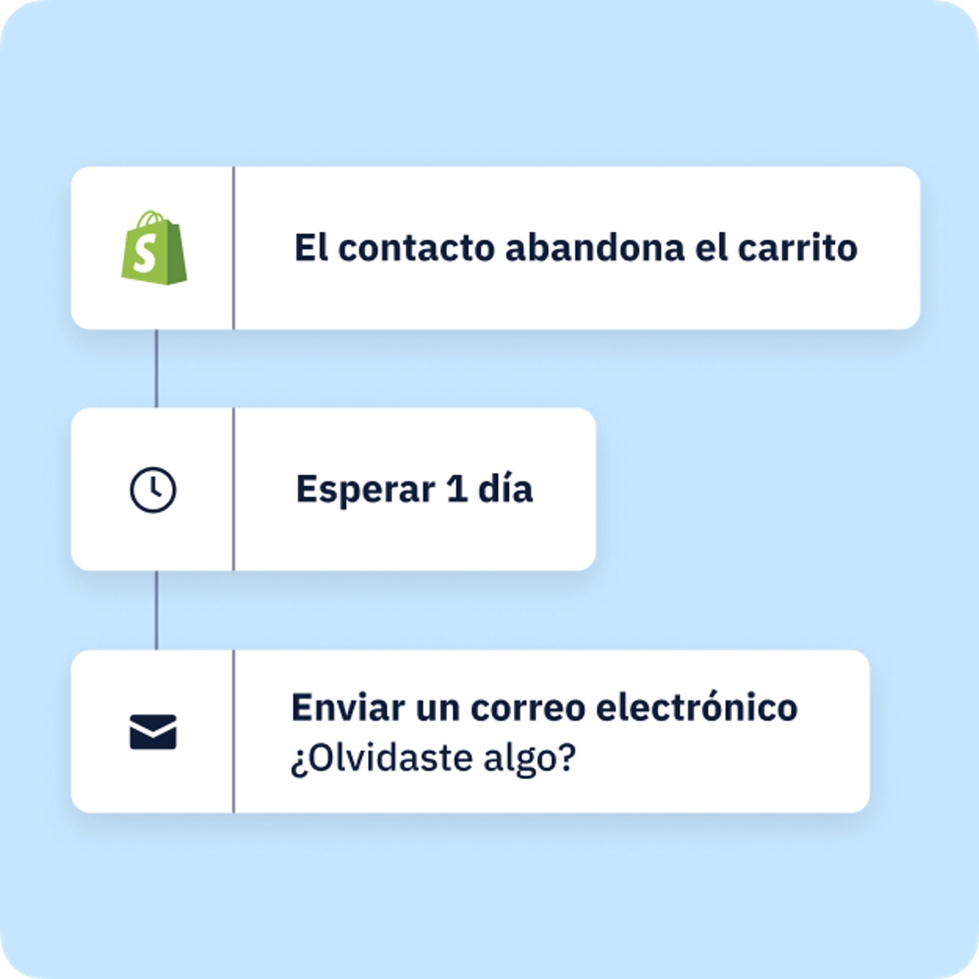 Envía correos electrónicos cuando tus clientes abandonen tu sitio web sin comprar los artículos del carrito. Recupera las ventas perdidas y lleva las compras más allá.