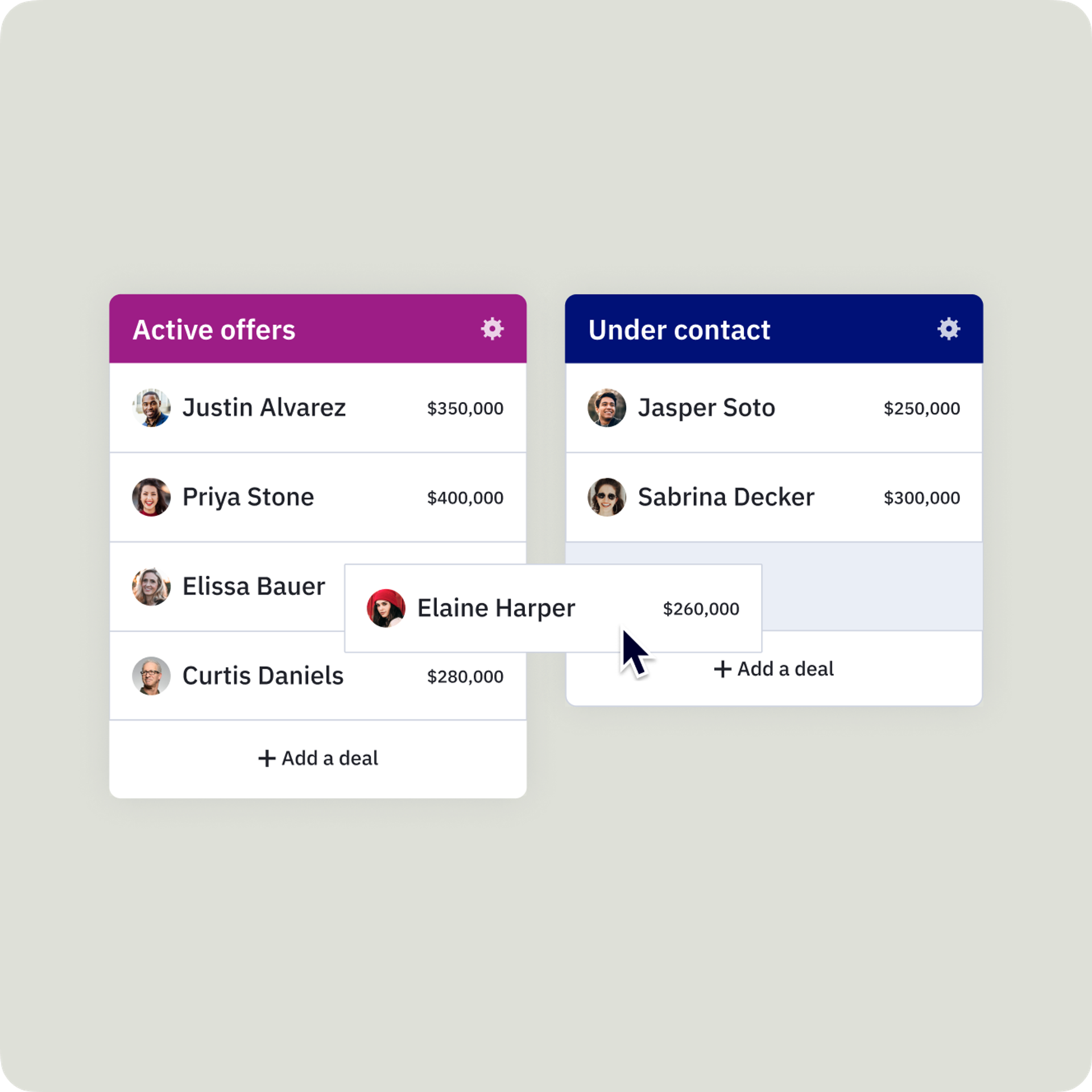 ActiveCampaign está diseñado para optimizar tu flujo de trabajo de ventas y ayudarte a hacer más con los mismos recursos. Ya seas un agente inmobiliario independiente que busca ampliar su negocio o si perteneces un equipo que quiere mejorar sus resultados, nuestras potentes herramientas de marketing y ventas pueden transformar tu empresa.