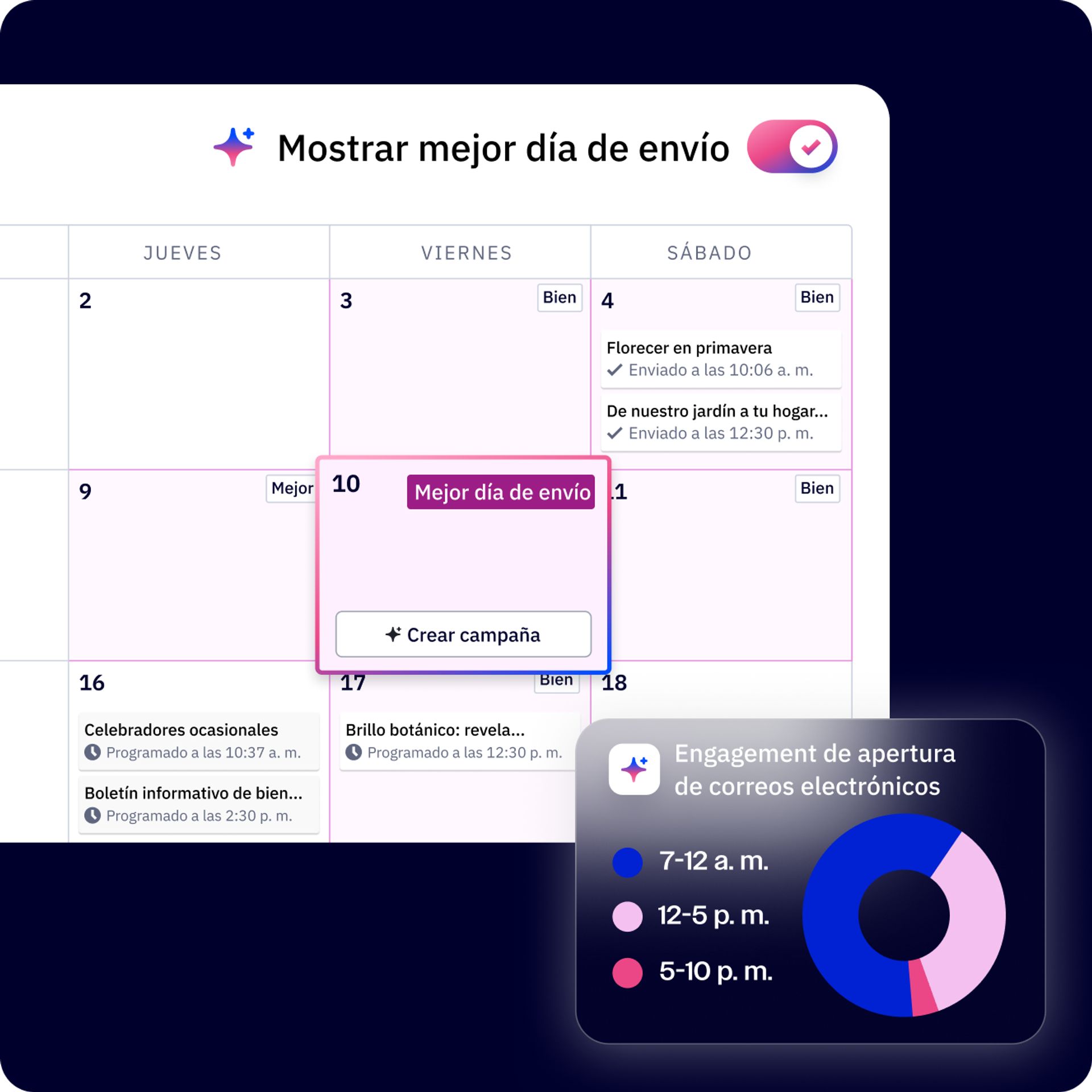 Planifica, programa y optimiza campañas con información y horarios impulsados por IA.