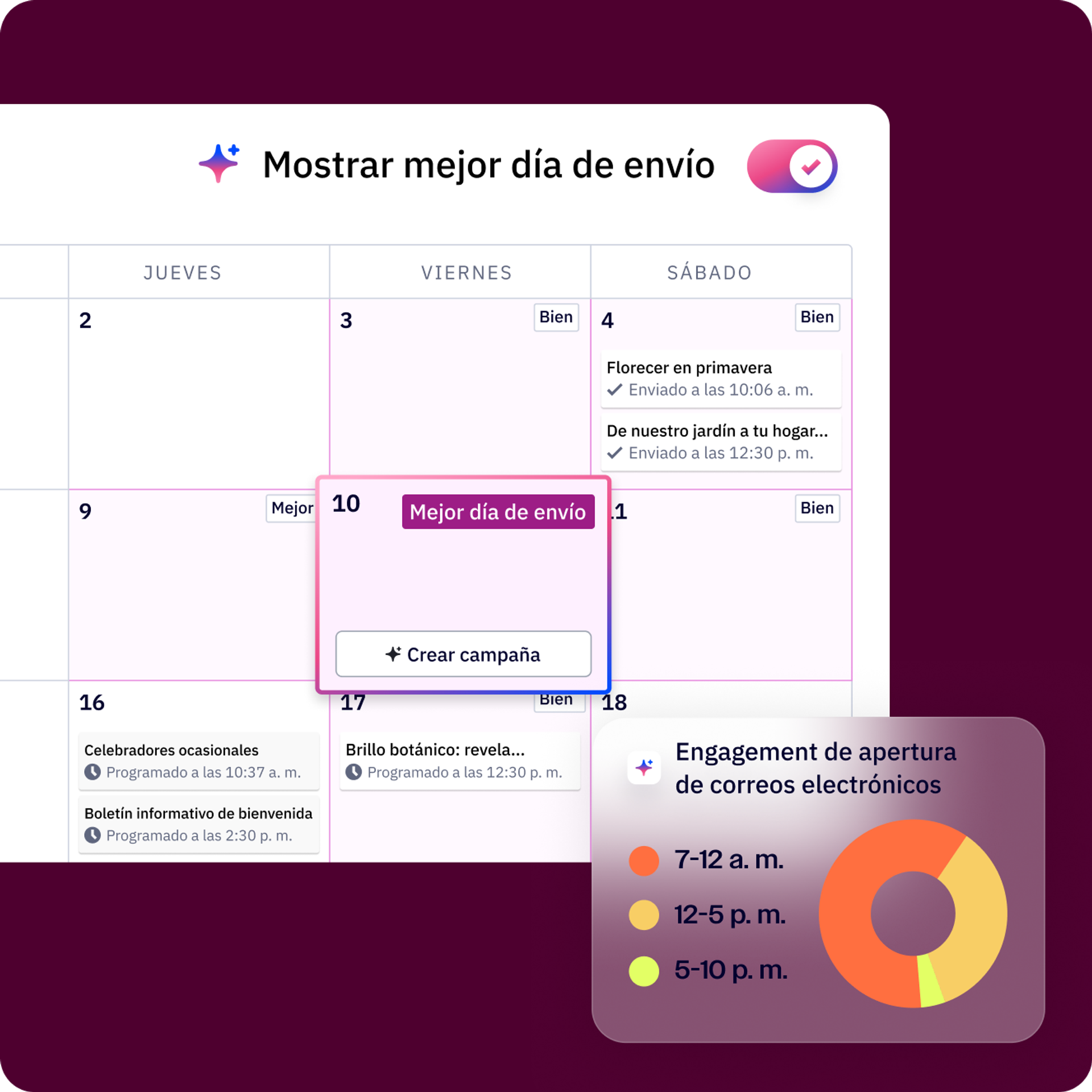 Ofrece el tipo de marketing para el que tus clientes te contrataron, pero hazlo las 24 horas del día, los 7 días de la semana.Con agentes de IA específicos para cada cliente, puedes aportar tu enfoque único a cada mensaje y guiar campañas que se adapten a cada público y objetivo.