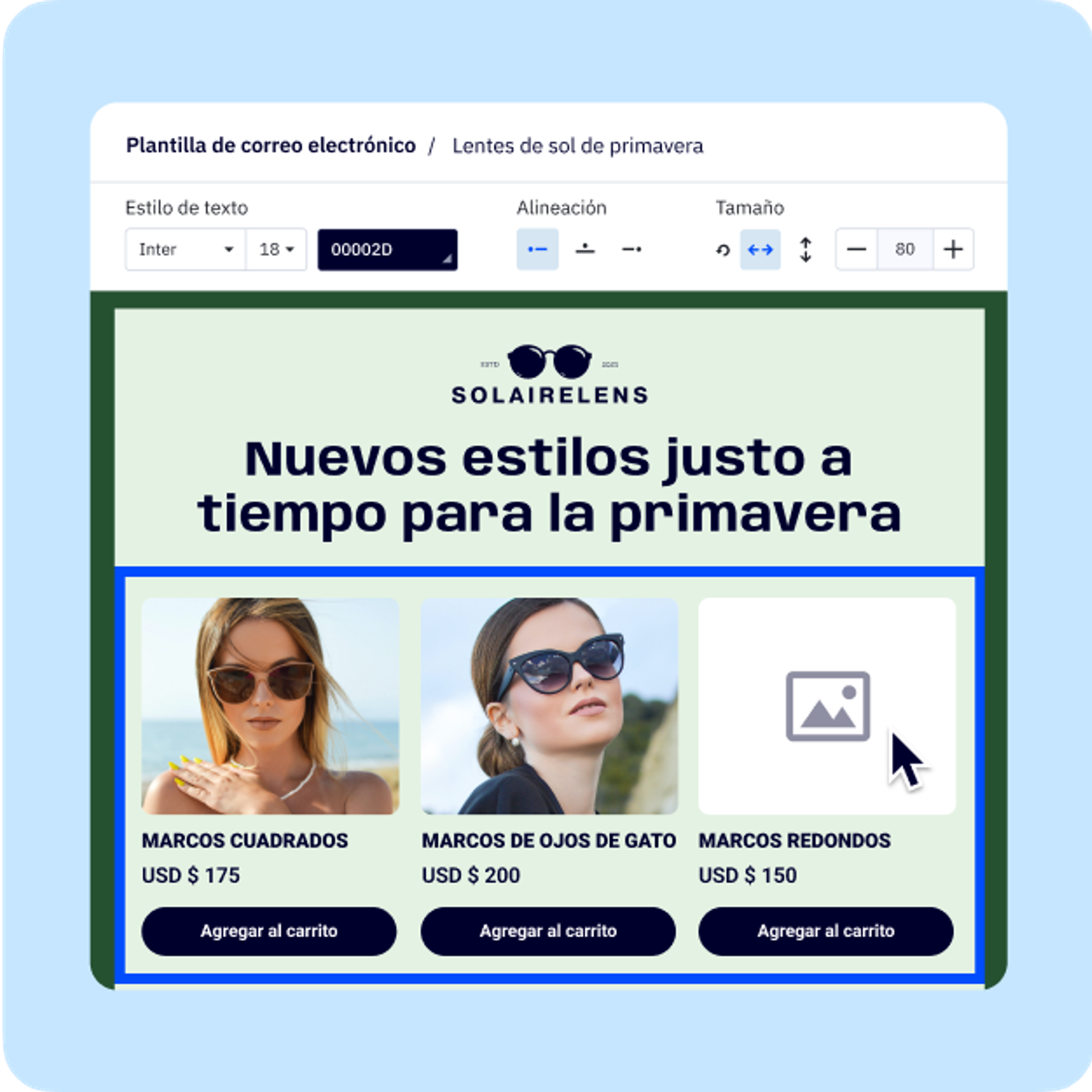 Asegúrate de que todos los correos electrónicos que envíes estén listos para llamar la atención (y conviértelos en ingresos). Nuestras herramientas de diseño te otorgan un control total sobre tu apariencia.