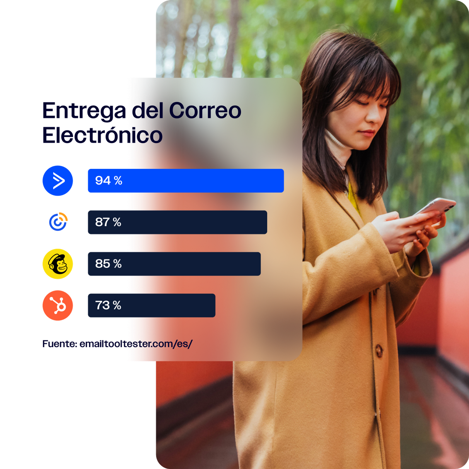 La mejor infraestructura y los conocimientos técnicos de ActiveCampaign significan que tus correos electrónicos se entregan en el buzón con una tasa mayor que Mailchimp y Hubspot.
