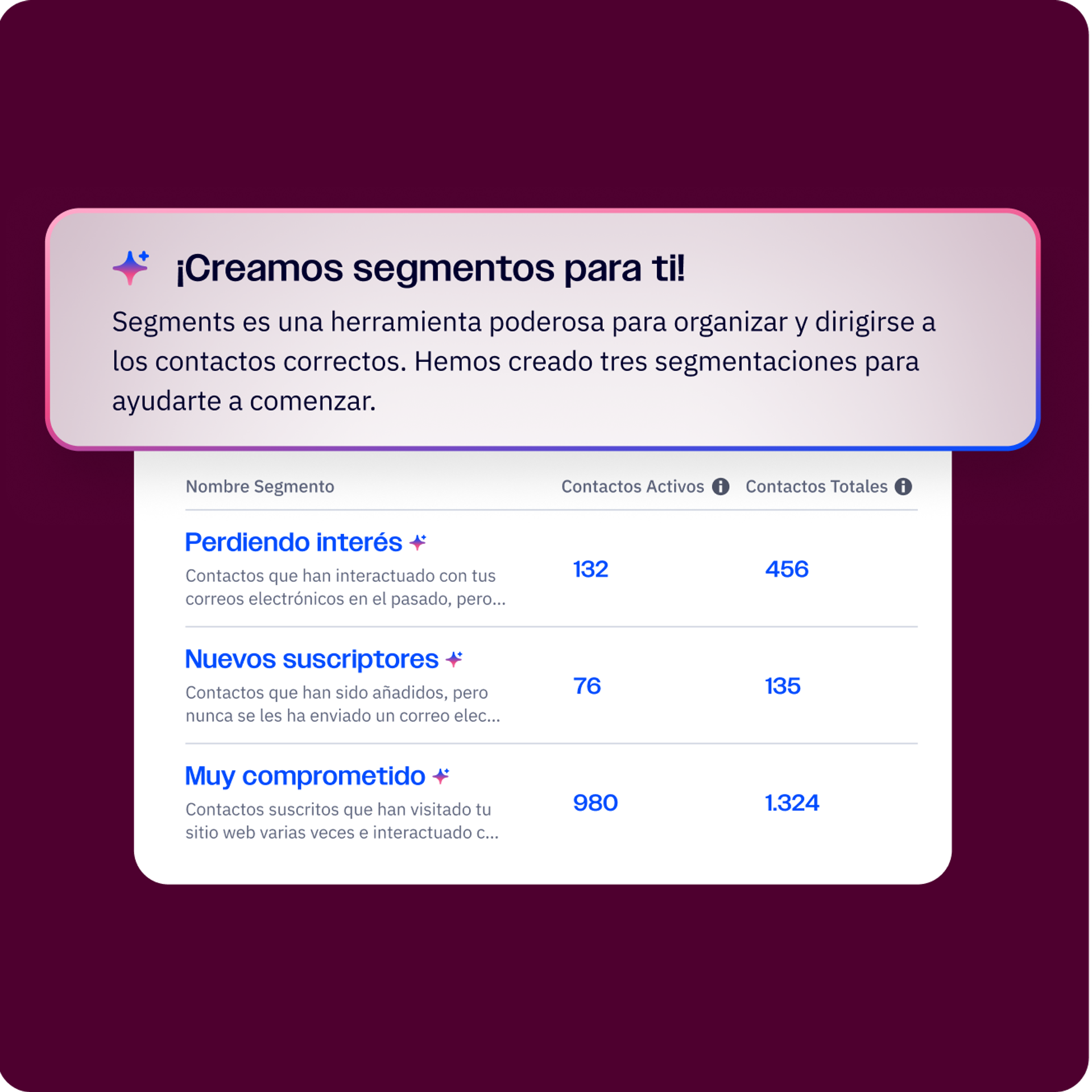 Olvídate del trabajo de fondo y ve directamente a lo que cuenta: campañas personalizadas que atraigan la atención y obtengan resultados. Detecta los contactos listos para comprar y los que están listos para vivir experiencias más significativas.