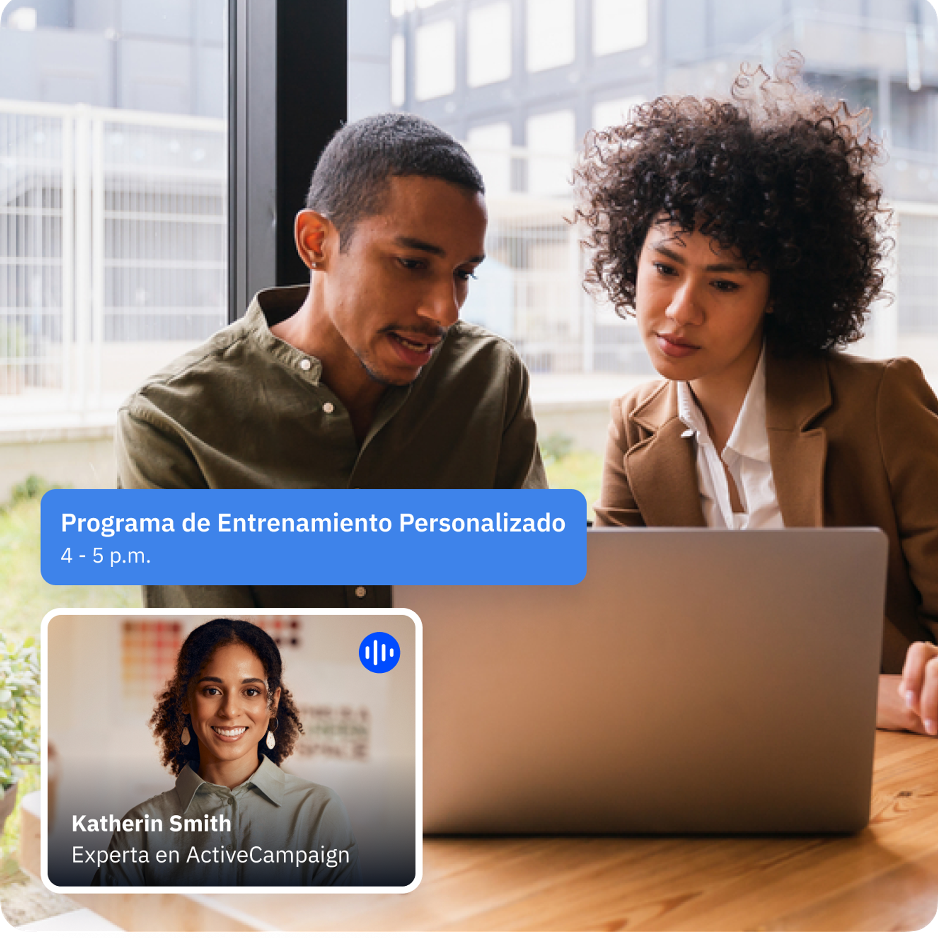 Con nuestro programa de Entrenamiento Personalizado, puedes obtener un paquete de entrenamiento privado y personalizado con un experto de ActiveCampaign y obtener información personalizada sobre cómo usar tu cuenta según tus necesidades empresariales únicas.