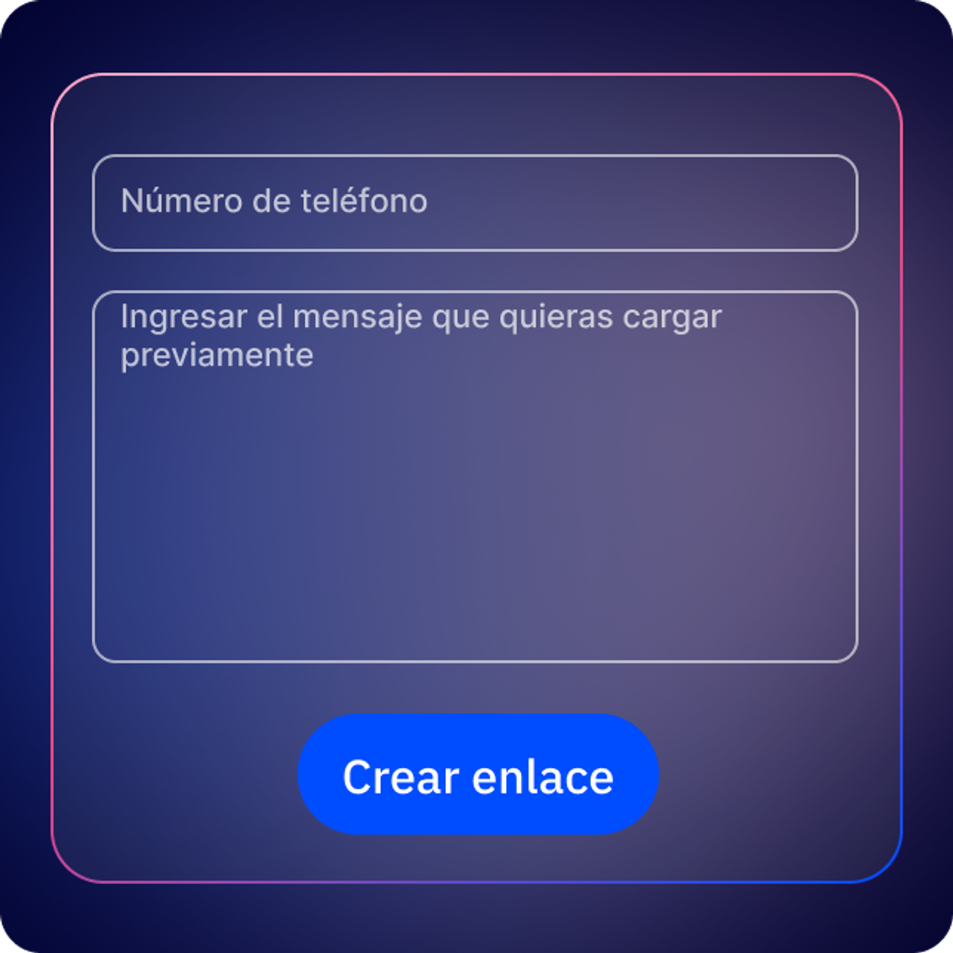 Genera enlaces personalizados para WhatsApp de forma fácil. Conecta con tus clientes más rápido y realiza un seguimiento de cada interacción