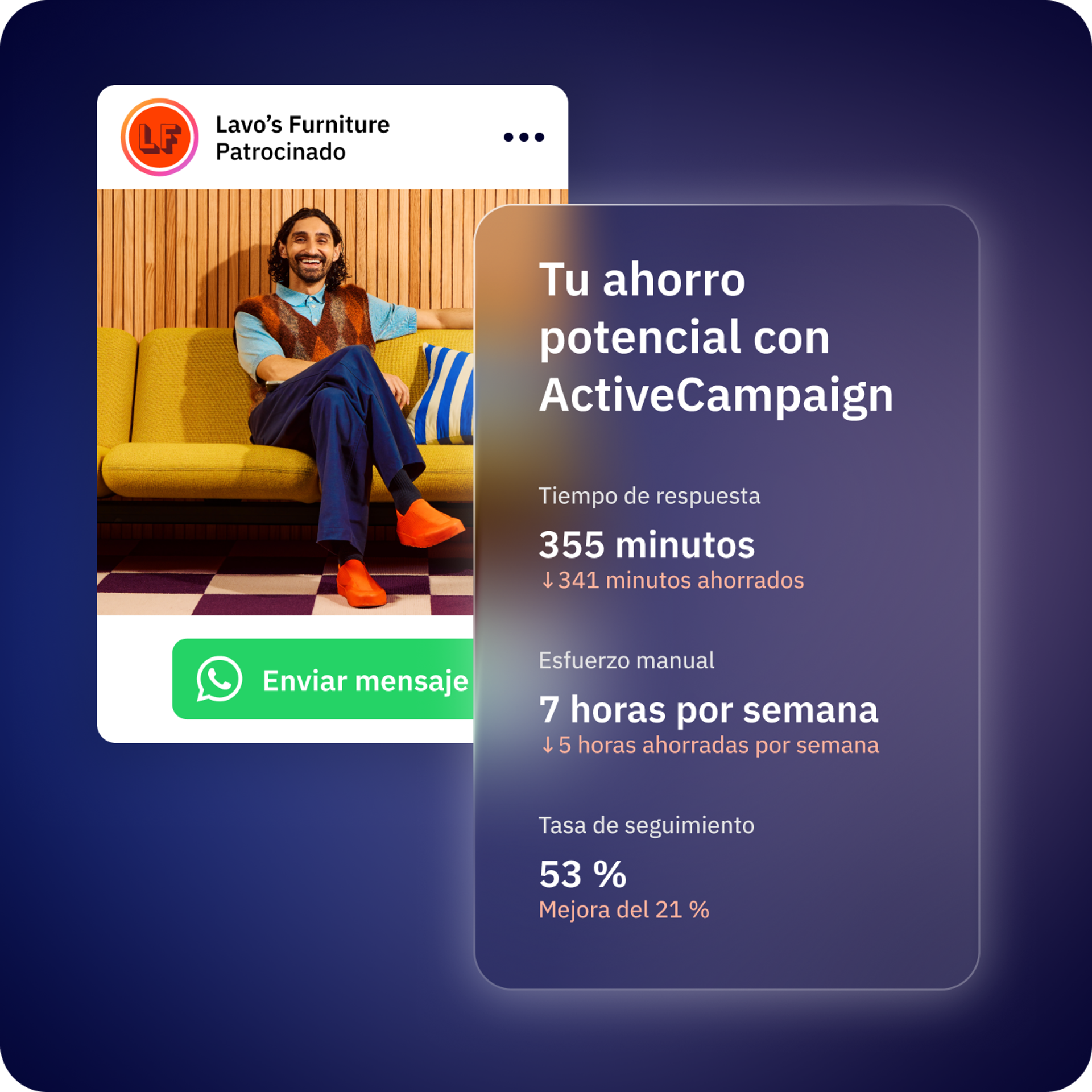 Descubre cuánto tiempo puede ahorrarle a tu empresa la Mensajería por WhatsApp. Obtén proyecciones personalizadas basadas en tus métricas de marketing actuales.