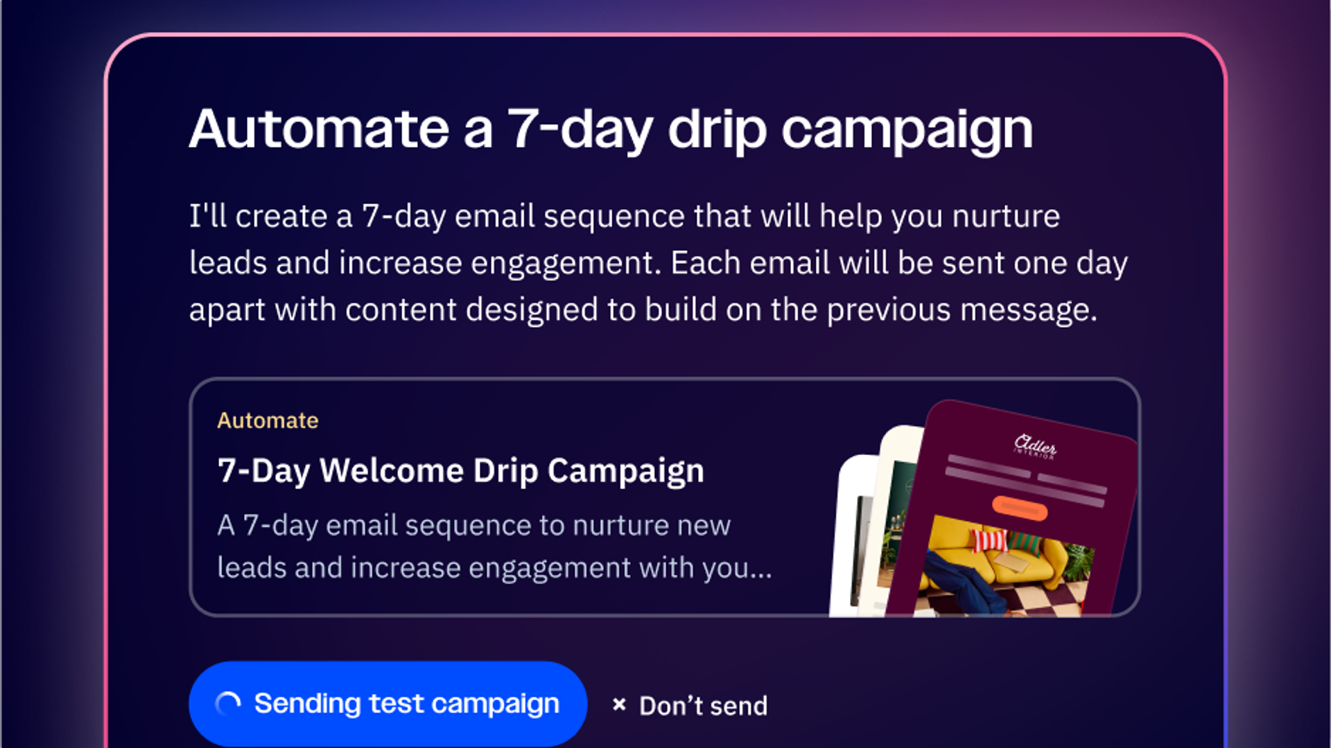 Instantly generate a multi-step nurture flow from a single prompt.