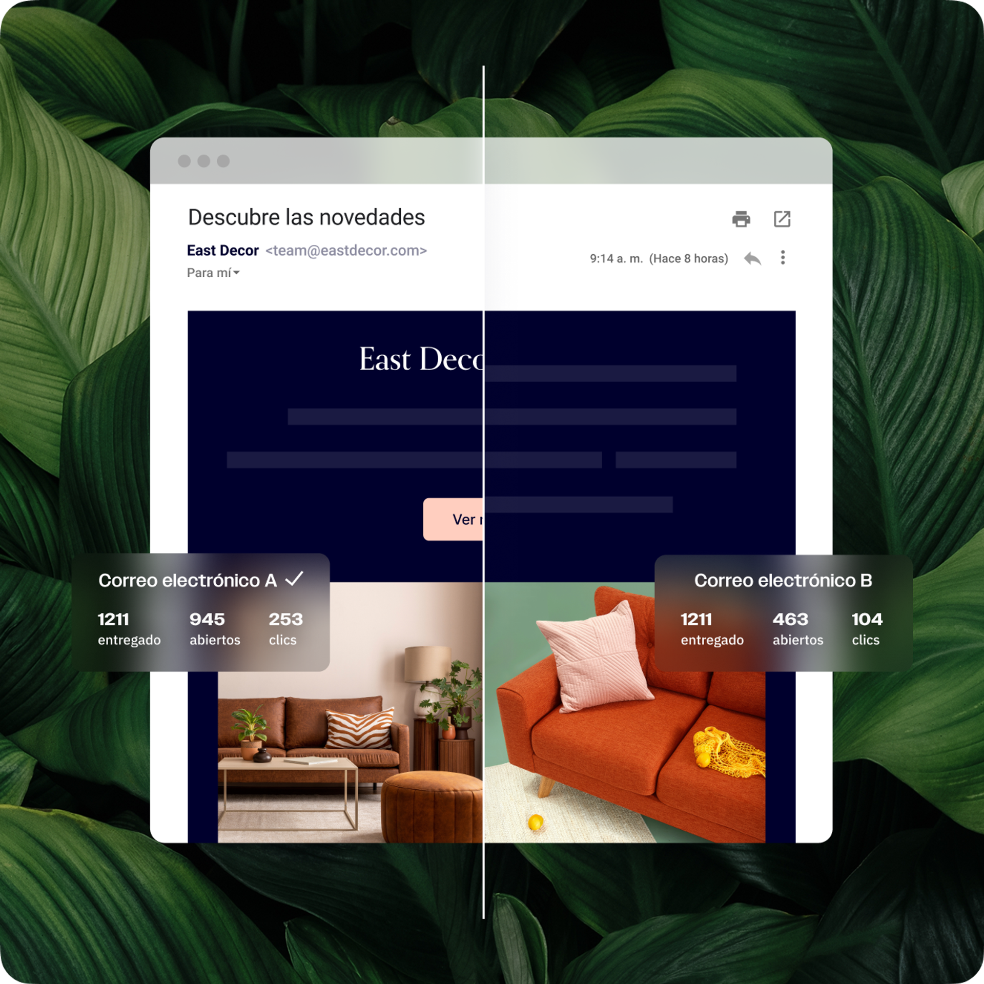 Ve más allá de las pruebas A/B y compara hasta cinco opciones diferentes. Prueba los títulos, las llamadas a la acción, el texto y las líneas de asunto para encontrar siempre el enfoque más atractivo.