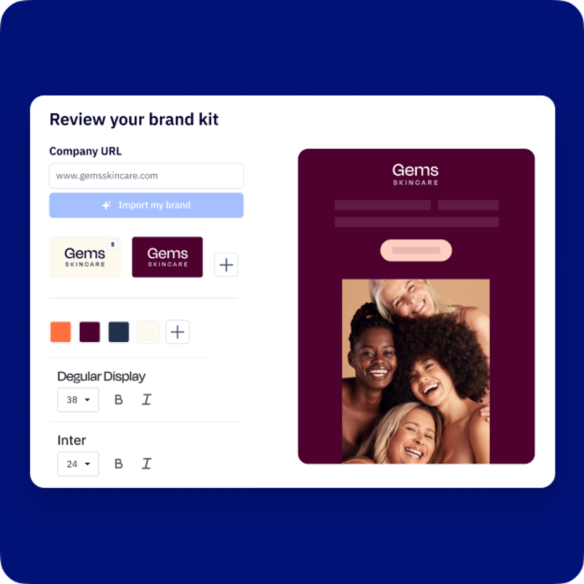 Grâce à notre nouvelle fonctionnalité d’importation de kits de marque, il ne faut que 9 secondes pour importer toutes les polices et couleurs de vos clients dans ActiveCampaign et commencer à créer des e-mails et pages de renvoi.