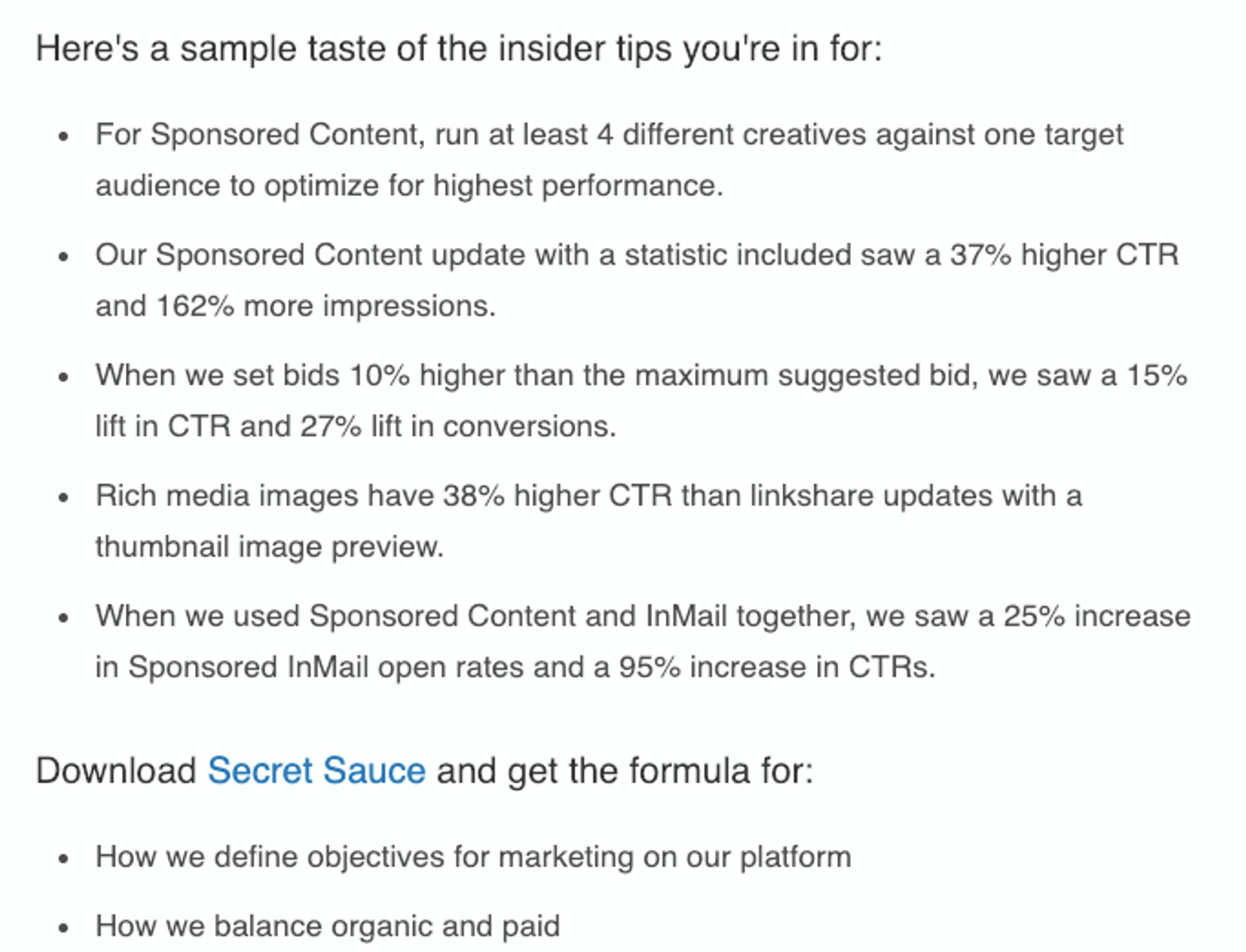 Le livre électronique LinkedIn Secret Sauce à télécharger est un autre excellent exemple de contenu.