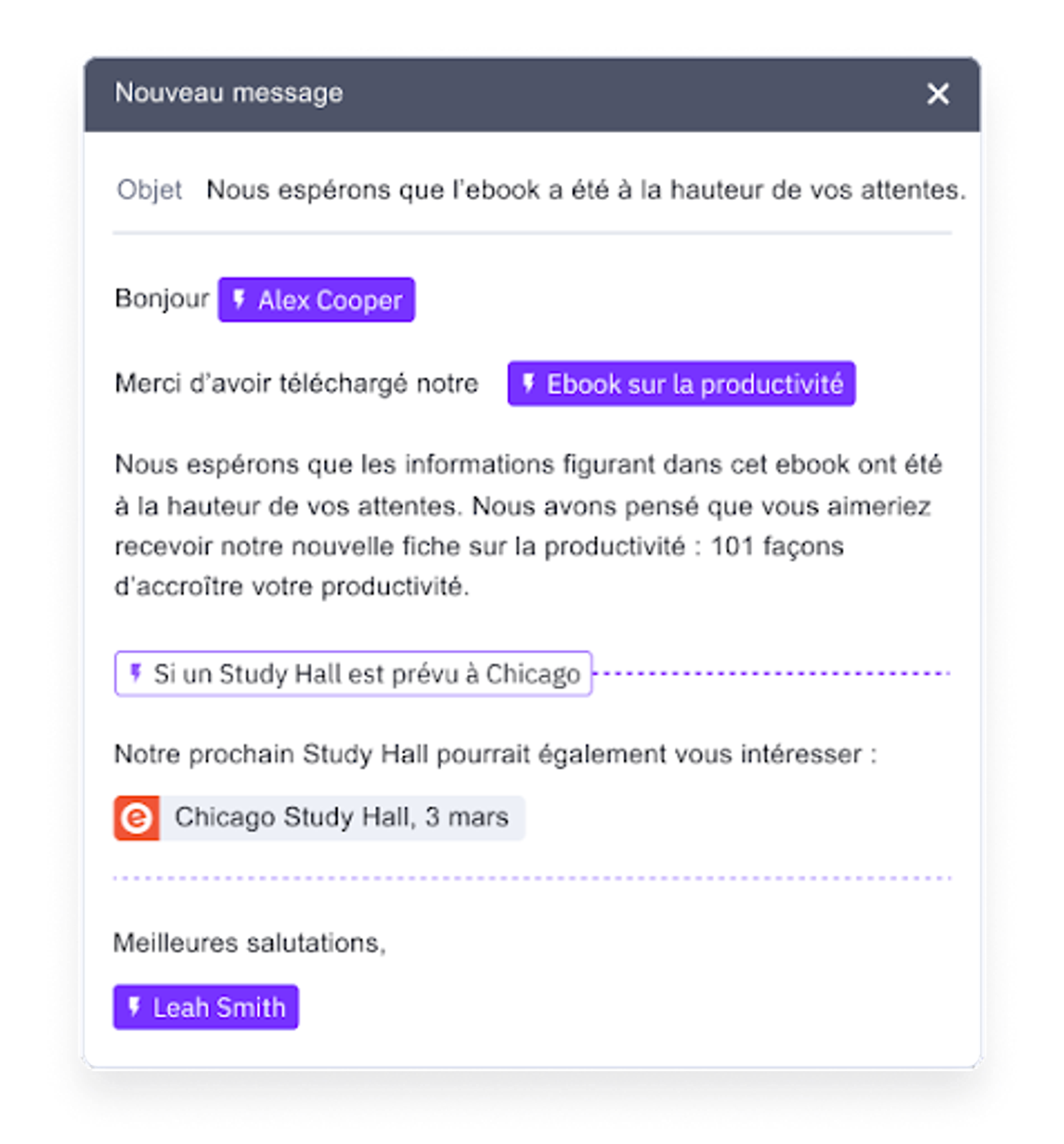 Le recours à l'automatisation des flux via un CRM est un atout majeur. Cela permet d'alléger les tâches chronophages du quotidien pour gagner en productivité et un temps précieux. S'équiper d'un logiciel de marketing automation pour gérer ce que personne n'a le temps de gérer permet d'automatiser ces tâches récurrentes afin de sortir d'une certaine routine, de gagner en efficacité et de vous recentrer sur votre cœur de métier. Une chose est sûre : plus une tâche est répétitive, plus elle sera automatisable.