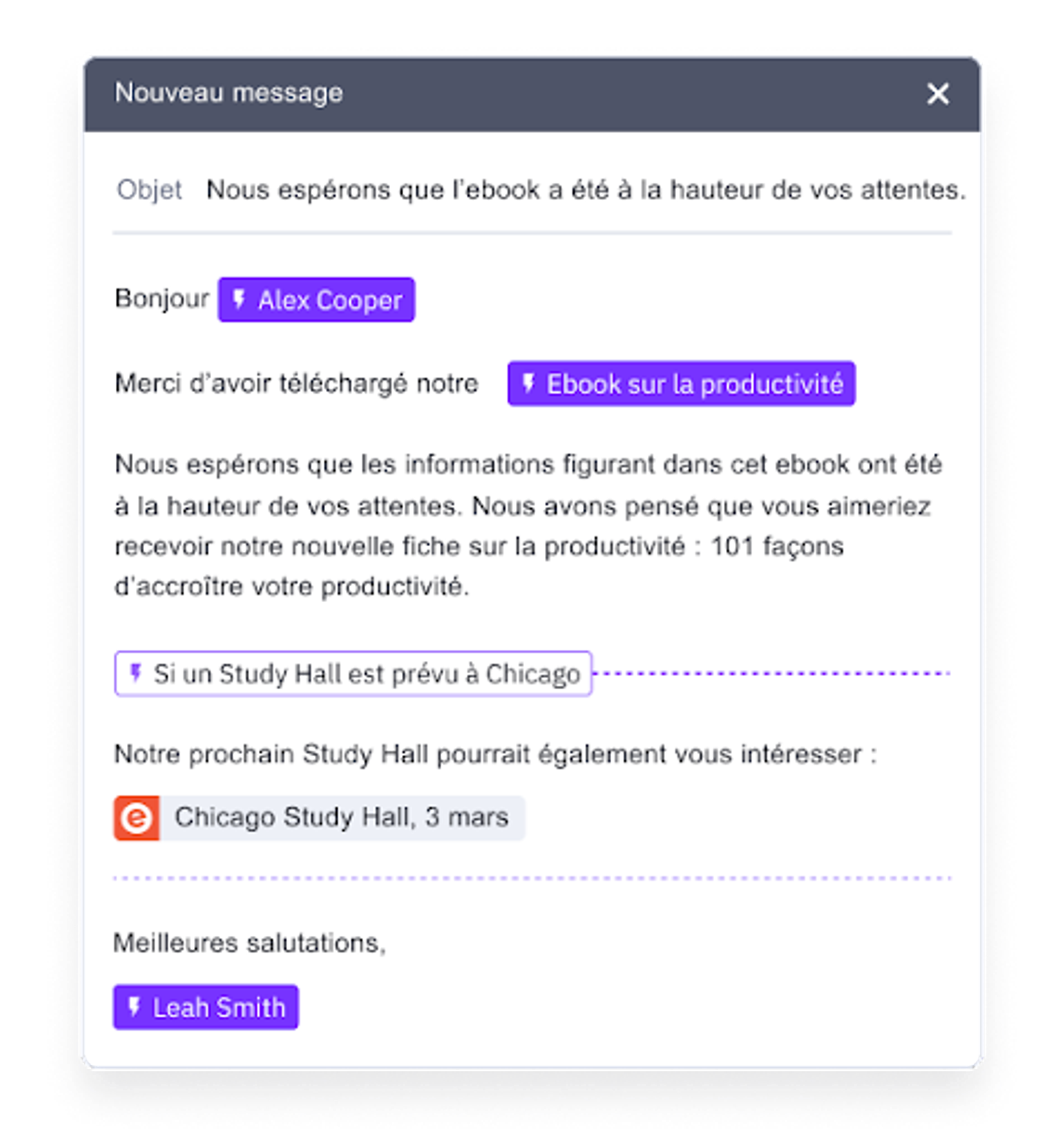 Les tâches qui doivent être effectuées souvent ou selon un timing précis sont parfaites pour l'automatisation, car les avantages sont immédiats. Vous passez ainsi moins de temps chaque jour sur des tâches répétitives, qui peuvent rapidement devenir déplaisantes.