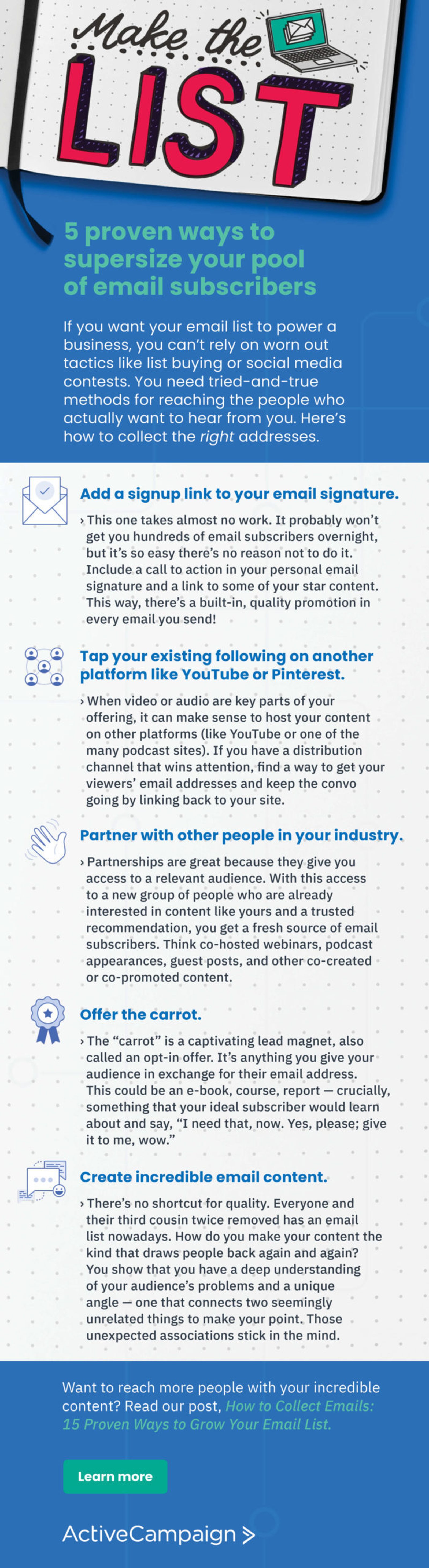 Lorsque vous créez une liste, il est facile de se laisser prendre par l’envie d’obtenir davantage de trafic pour votre site Internet.