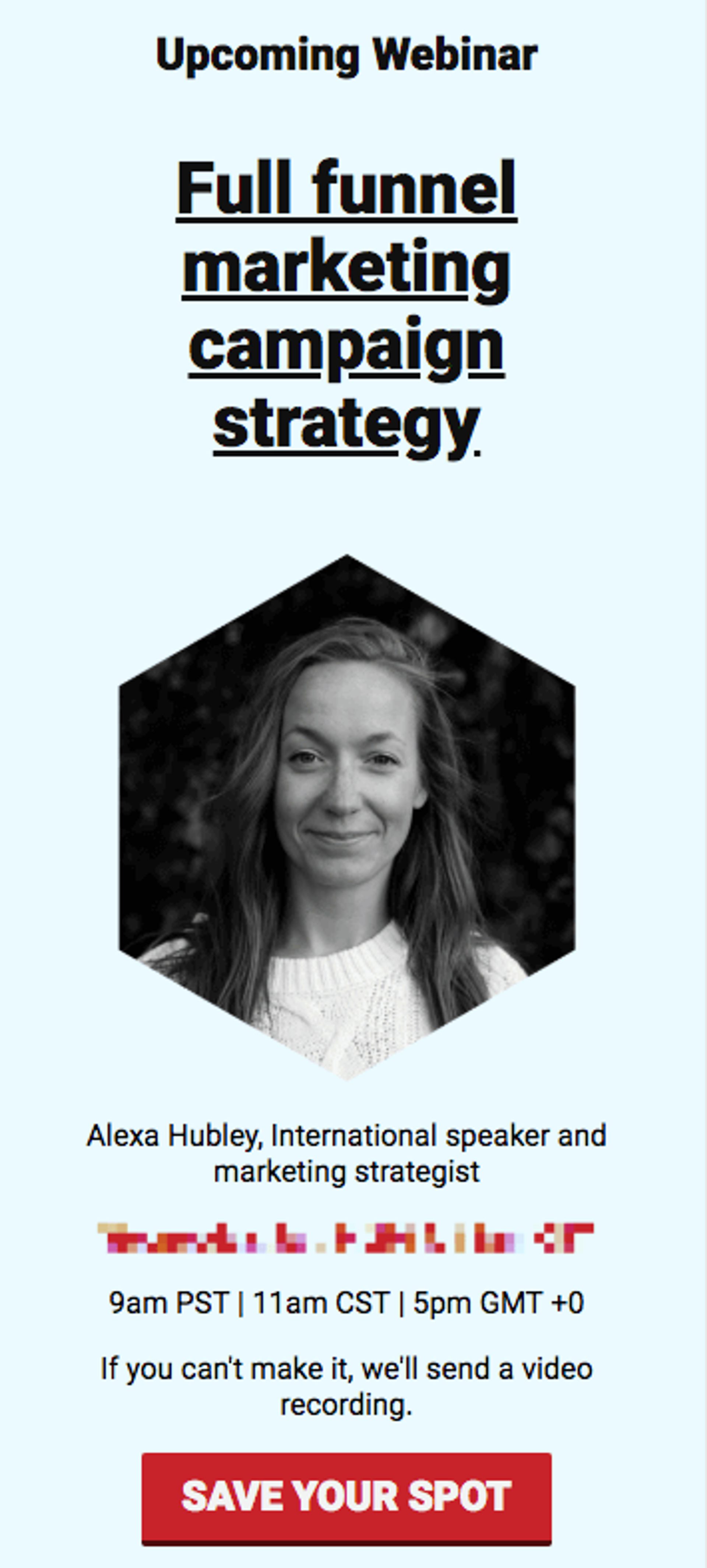 CXL organise régulièrement des webinaires avec des influenceurs marketing. Tout le monde est gagnant, car l’influenceur élargit sa portée et CXL est promu via la liste de diffusion et les réseaux sociaux de l’influenceur.