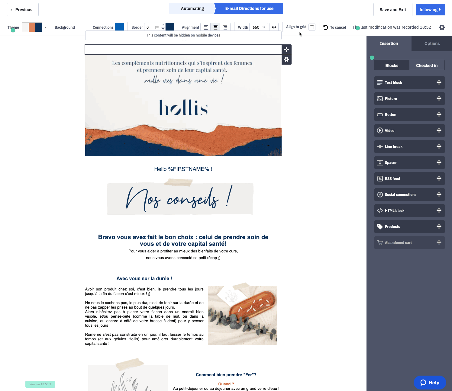 Sa stratégie clé consistait à sensibiliser différents segments de professionnels de santé, tels que des sages-Sa stratégie clé consistait à mener des actions de sensibilisation auprès de différents segments de professionnels de la santé, notamment les sages-femmes, les gynécologues et les pharmaciens, via ActiveCampaign. Ces professionnels prescrivent régulièrement des traitements et recommandent des compléments à leurs patients. En partageant du contenu auquel ils s’identifient et en leur montrant comment les produits Hollis peuvent aider leurs patients, Mathilde peut atteindre davantage de ses clients cibles, ce qui lui fait gagner du temps.