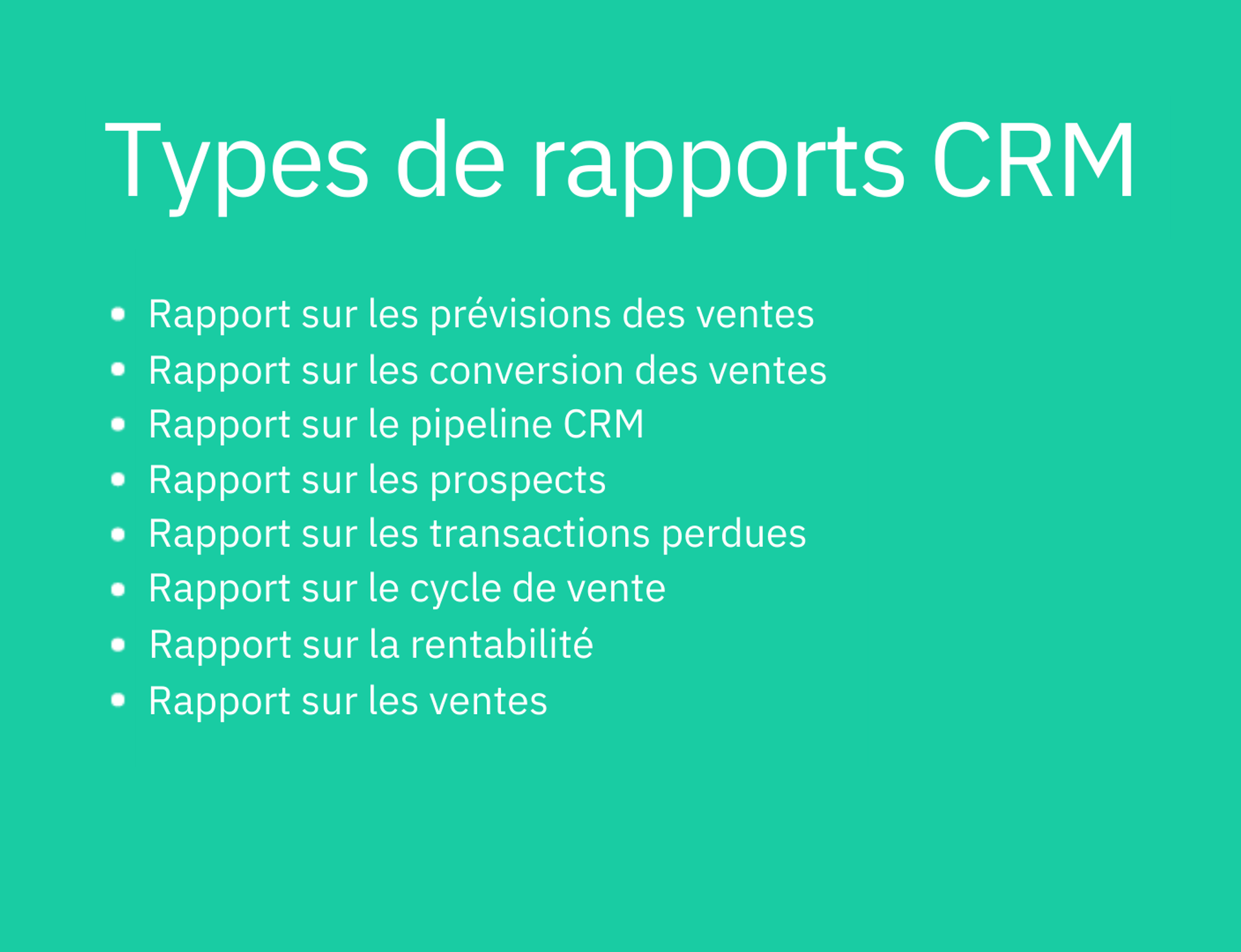 Ils se déclinent sous 8 types de rapports que vous trouverez dans votre outil CRM.
