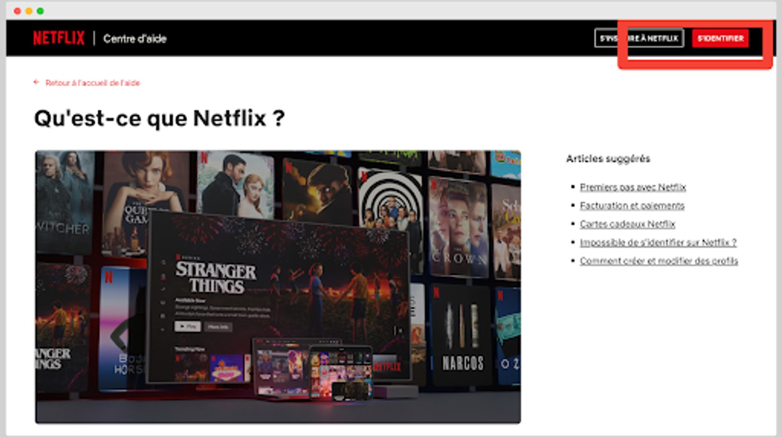 Dans la conception Web, le pli est le bas du navigateur, de sorte que tout le contenu qui le précède soit au-dessus de la ligne de flottaison ou du pli. L'argument avancé par les amoureux du CTA au-dessus du pli est que le contenu que nous voyons en premier est aussi le plus mémorable et susceptible de nous impacter. Netflix a choisi cette stratégie avec son bouton « s'identifier ».